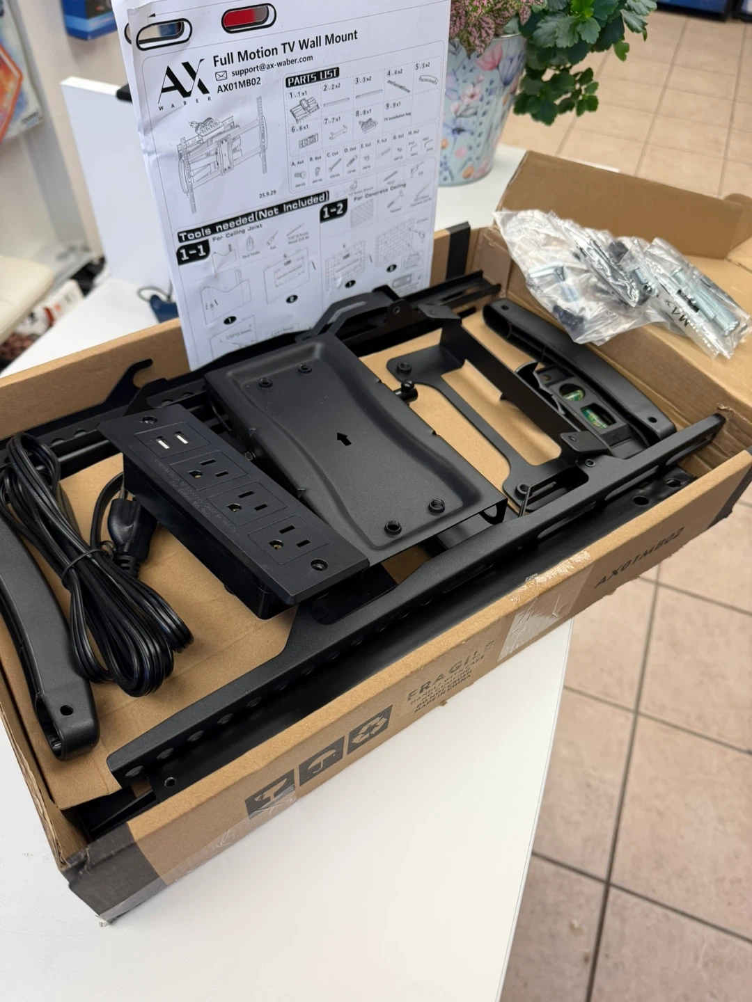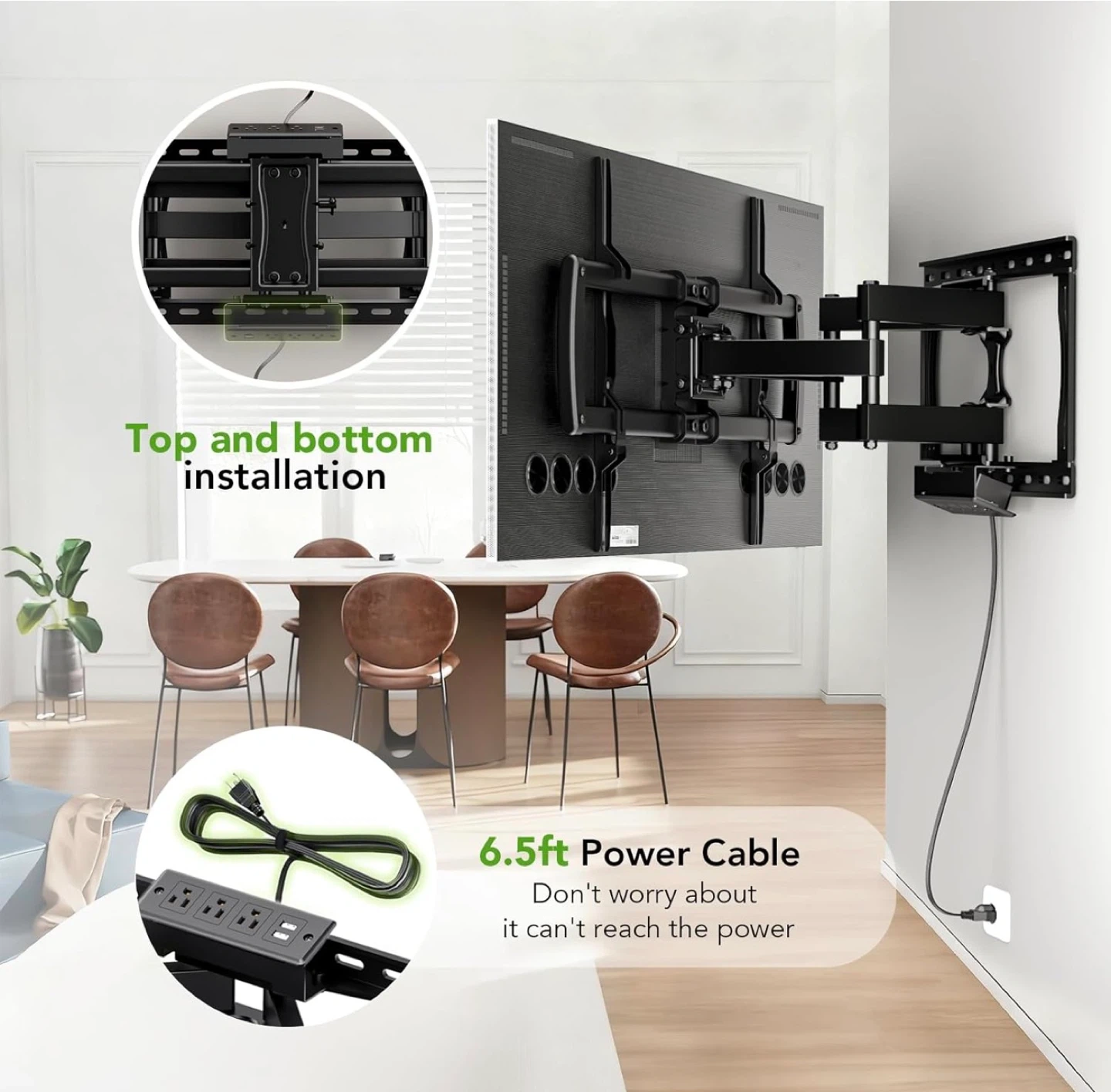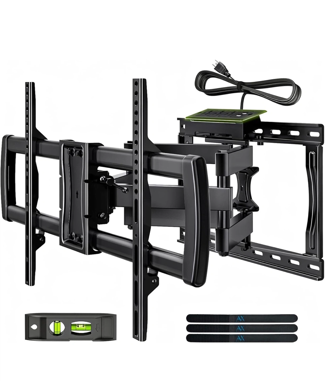 Full Motion TV Wall Mount Bracket with Power Outlet for Most 32-85 inch TV,TV Mount Dual Articulating Arms,Tilt/Swivel/Extension/Leveling,Fits 8” 12” 16" Studs,Max Vesa 600x400mm, Holds up to 132lbs