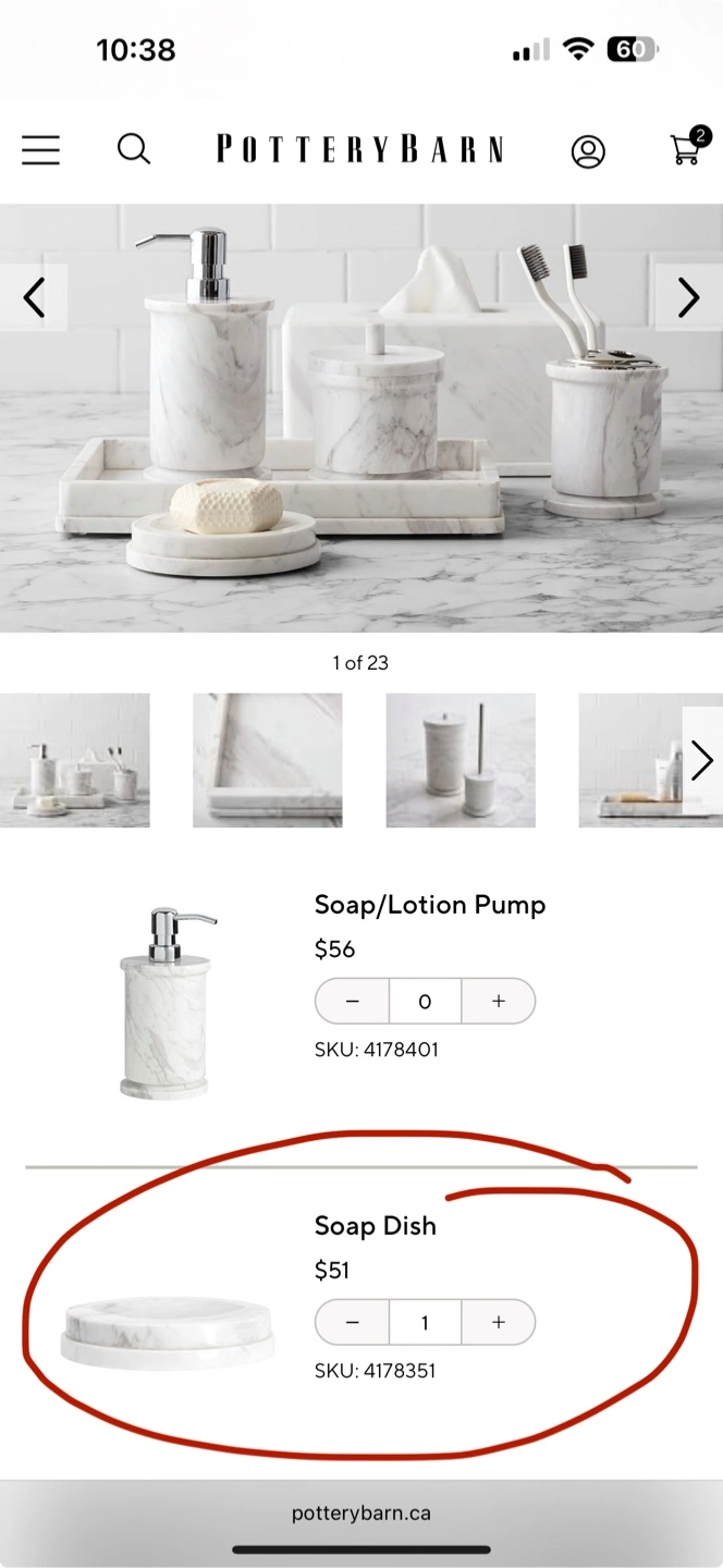 I’m selling a Pottery Barn x Monique Lhuillier marble soap dish in excellent condition. It retails for $51 + tax. Made from 100% marble.