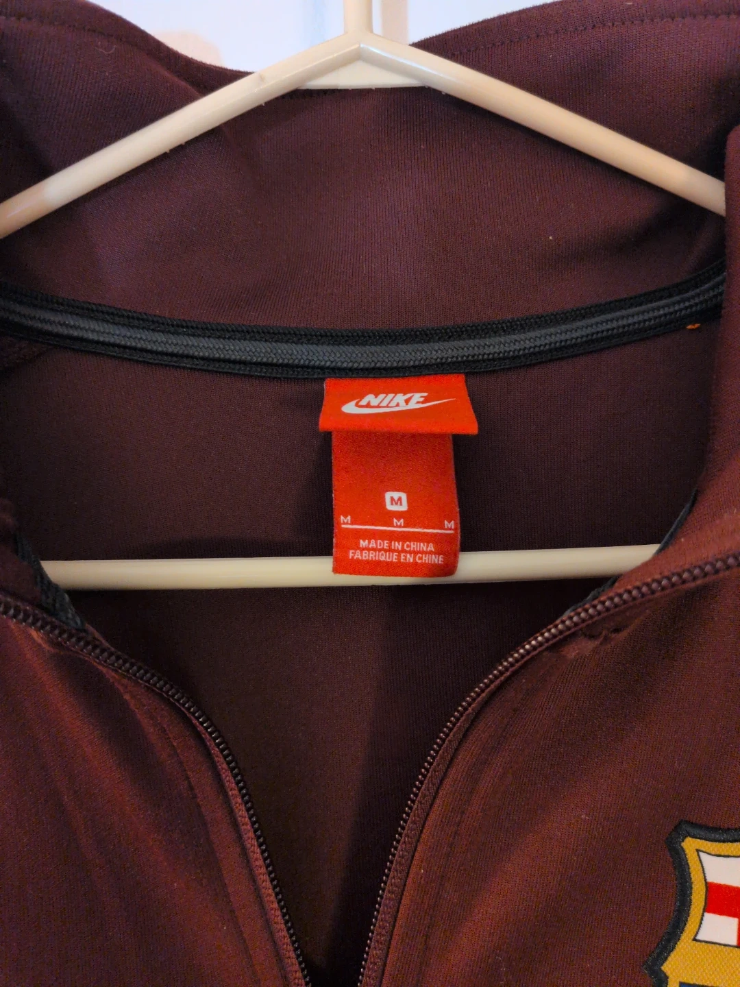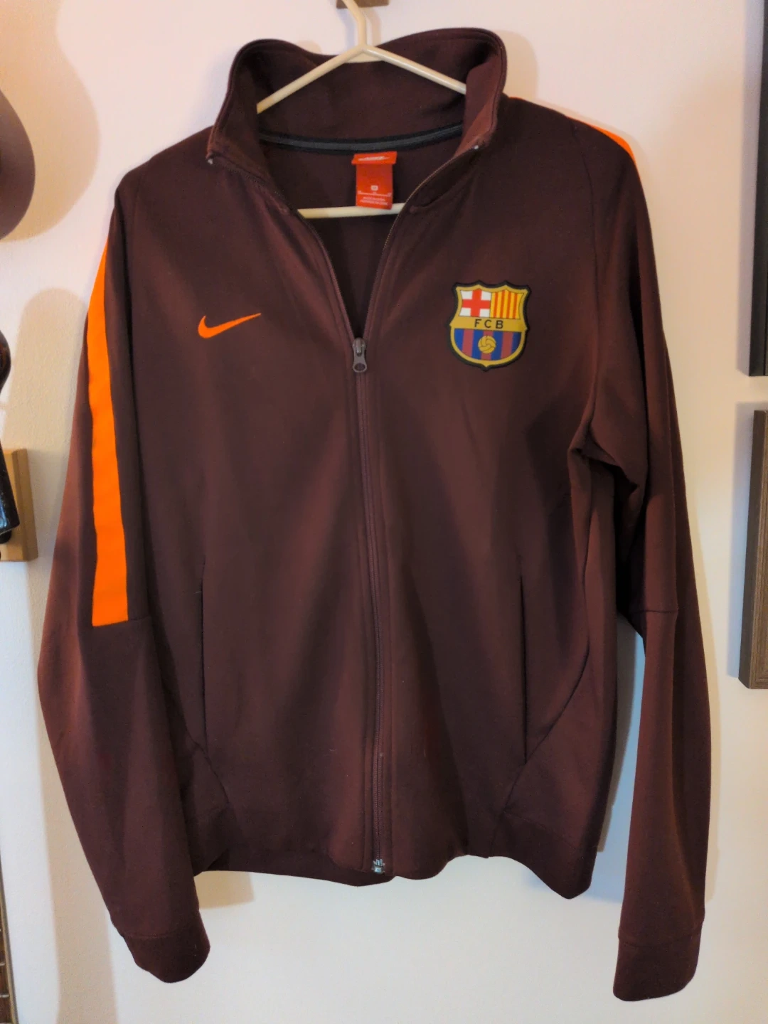 Selling a Nike FC Barcelona track jacket in size medium. It's in great condition and features the iconic FC Barcelona crest. Perfect for any fan!