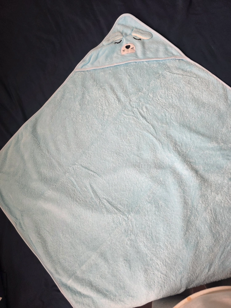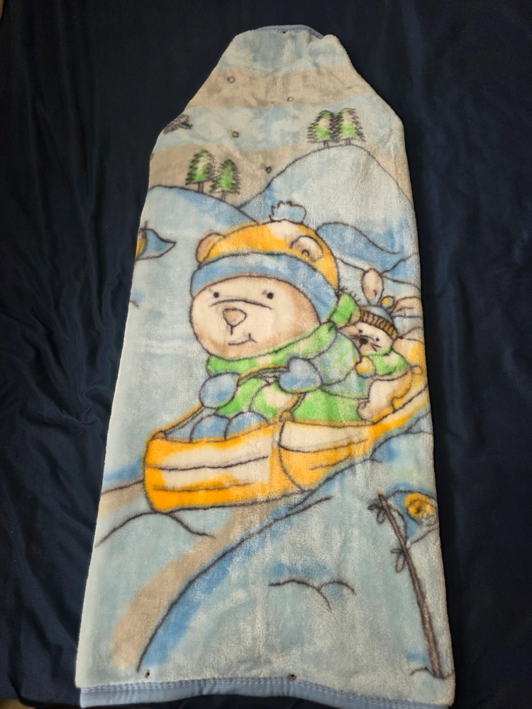 Keep your little one cozy with this super soft baby blanket from Gold Mink! It features a cute design with a bear and bunny in a canoe, perfect for snuggling. The blanket is made of 100% acrylic pile and measures 80x100cm. 2 bath towels. blanket for $20 and bath towels $10 each or both for $15.