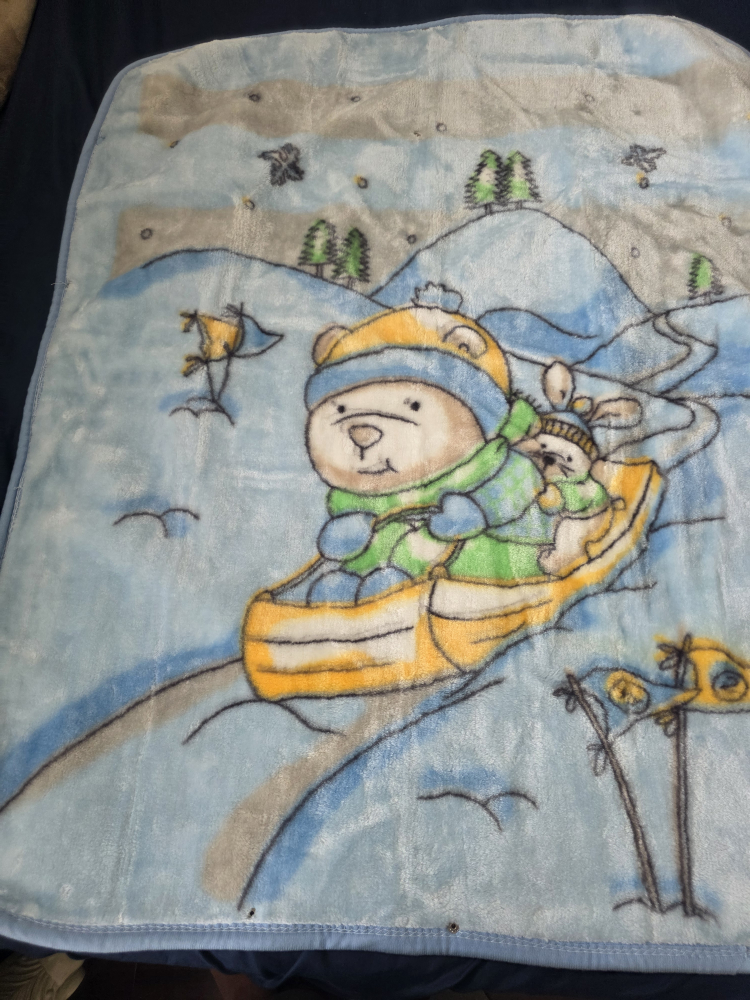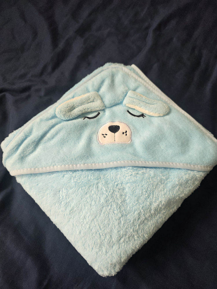 Keep your little one cozy with this super soft baby blanket from Gold Mink! It features a cute design with a bear and bunny in a canoe, perfect for snuggling. The blanket is made of 100% acrylic pile and measures 80x100cm. 2 bath towels. blanket for $20 and bath towels $10 each or both for $15.