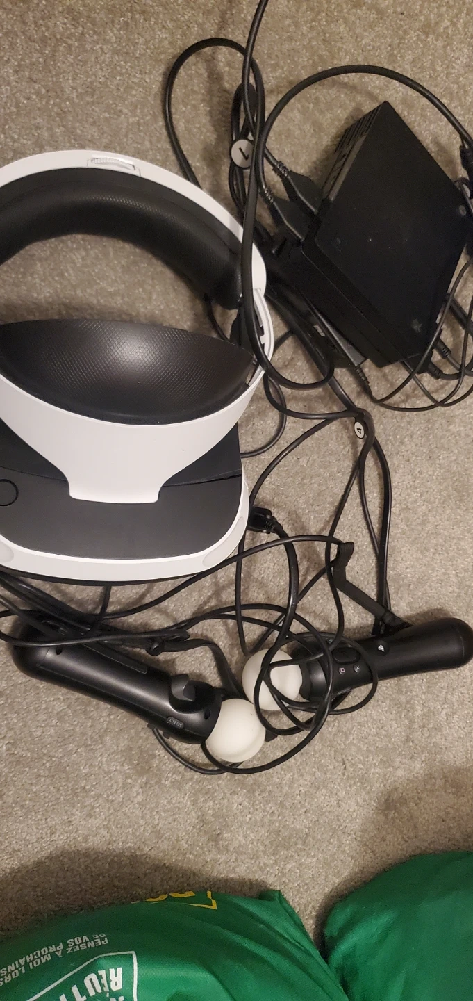 Sony PlayStation VR headset and controllers included. This bundle lets you jump into immersive virtual reality experiences. It's designed for PlayStation consoles, offering a gateway to gaming and entertainment like never before!