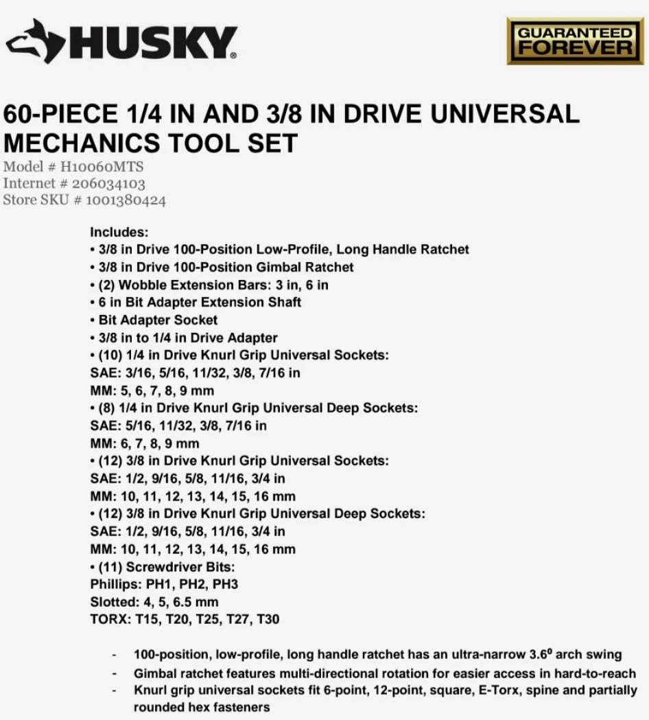 Husky 60-Piece Universal Mechanics Tool Set (H10060MTS)