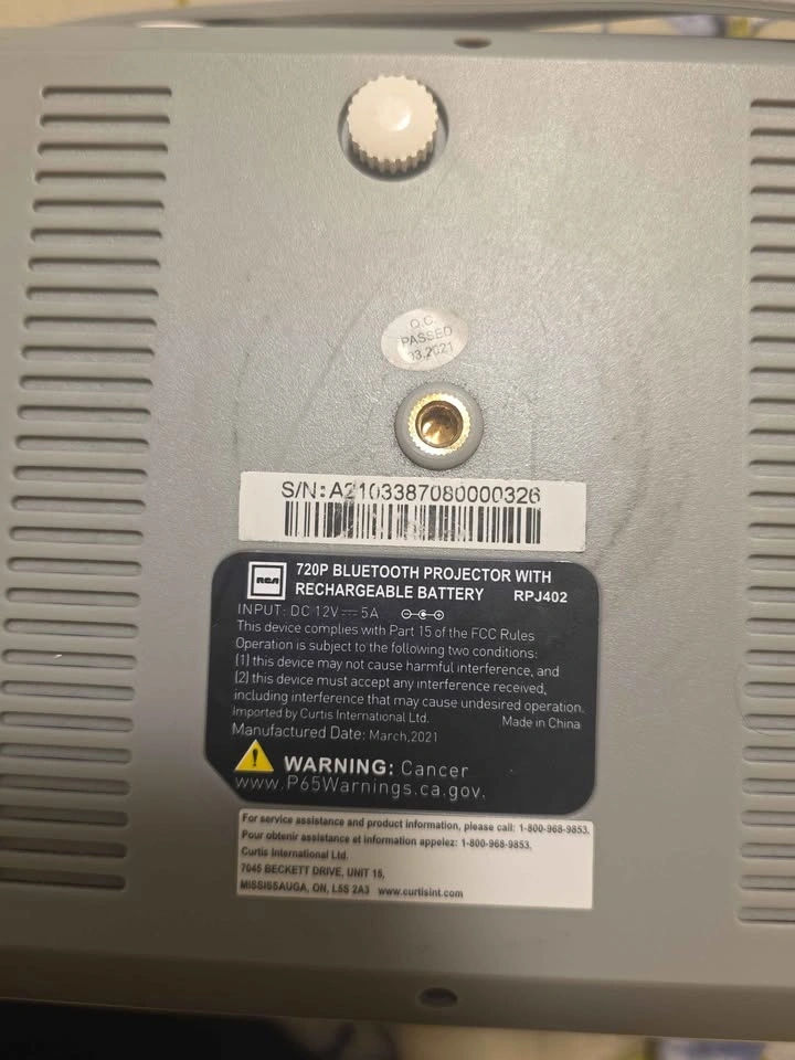 10RCA portable projector in great condition. 720p resolution, HDMI input, USB input, and Bluetooth audio. Perfect for movie nights or gaming. Includes: • Projector • Tripod stand • Power cable • HDMI cable Works perfectly. Pickup in Regina.