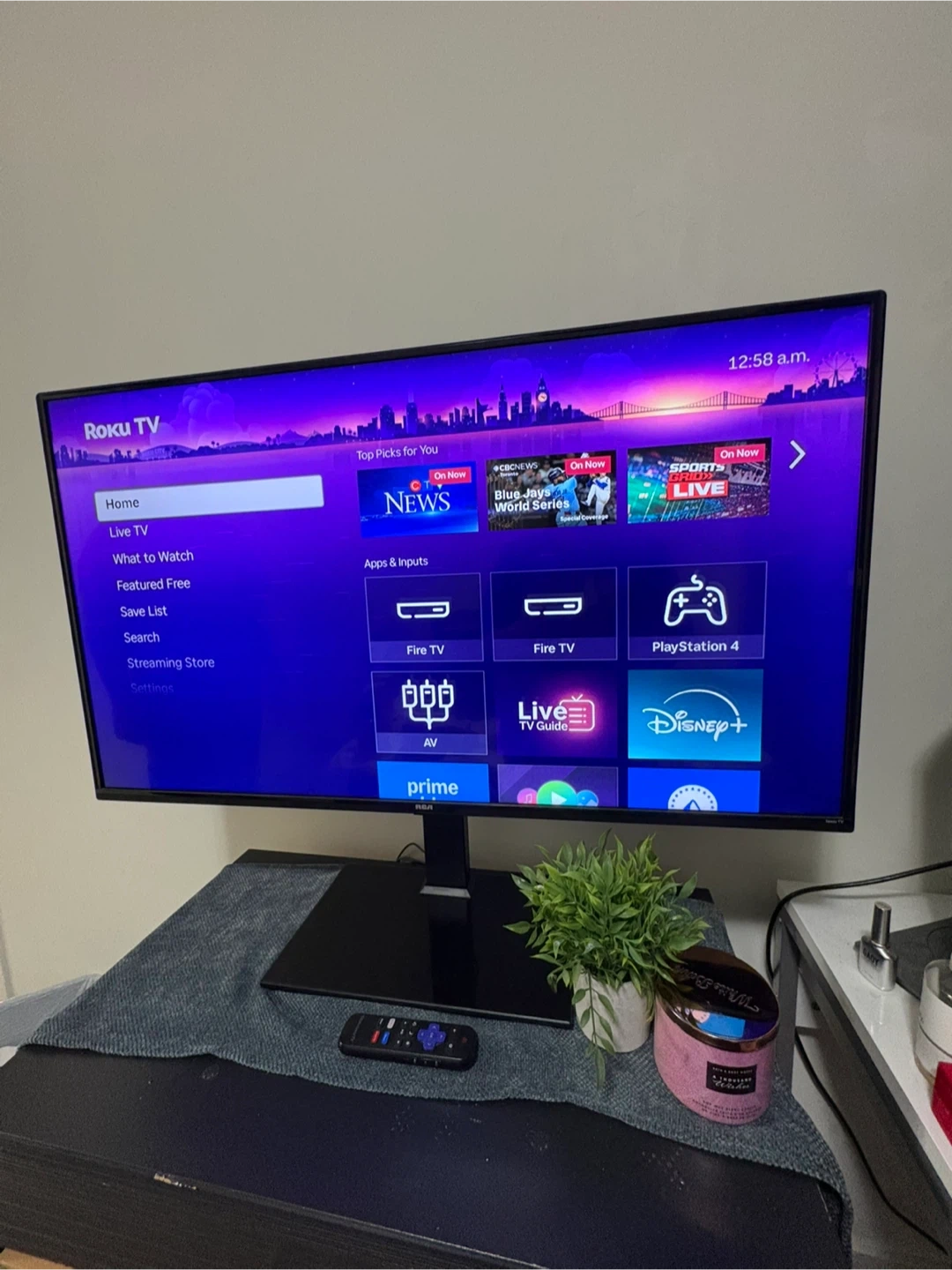 58RCA Roku smart Tv 40 inches TV with a adjustable back stand. Comes with the remote. Mint condition. Pickup from South Etobicoke. Can deliver for additional charge.
