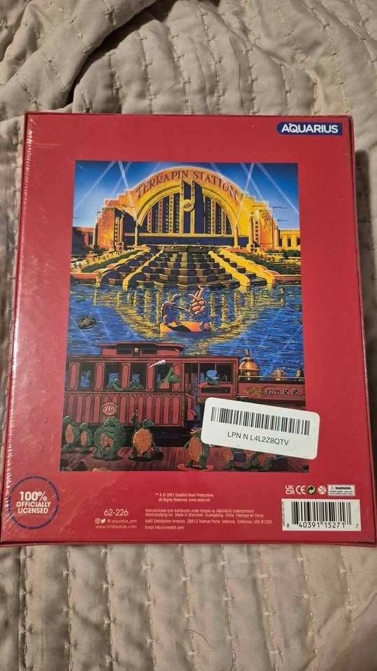 New Grateful Dead puzzle featuring the Terrapin Station album art. It has 500 pieces and is made by Aquarius. The finished puzzle measures 14in x 19in (35cm x 48cm). It is still sealed in plastic and has never been opened. Officially licensed merchandise.