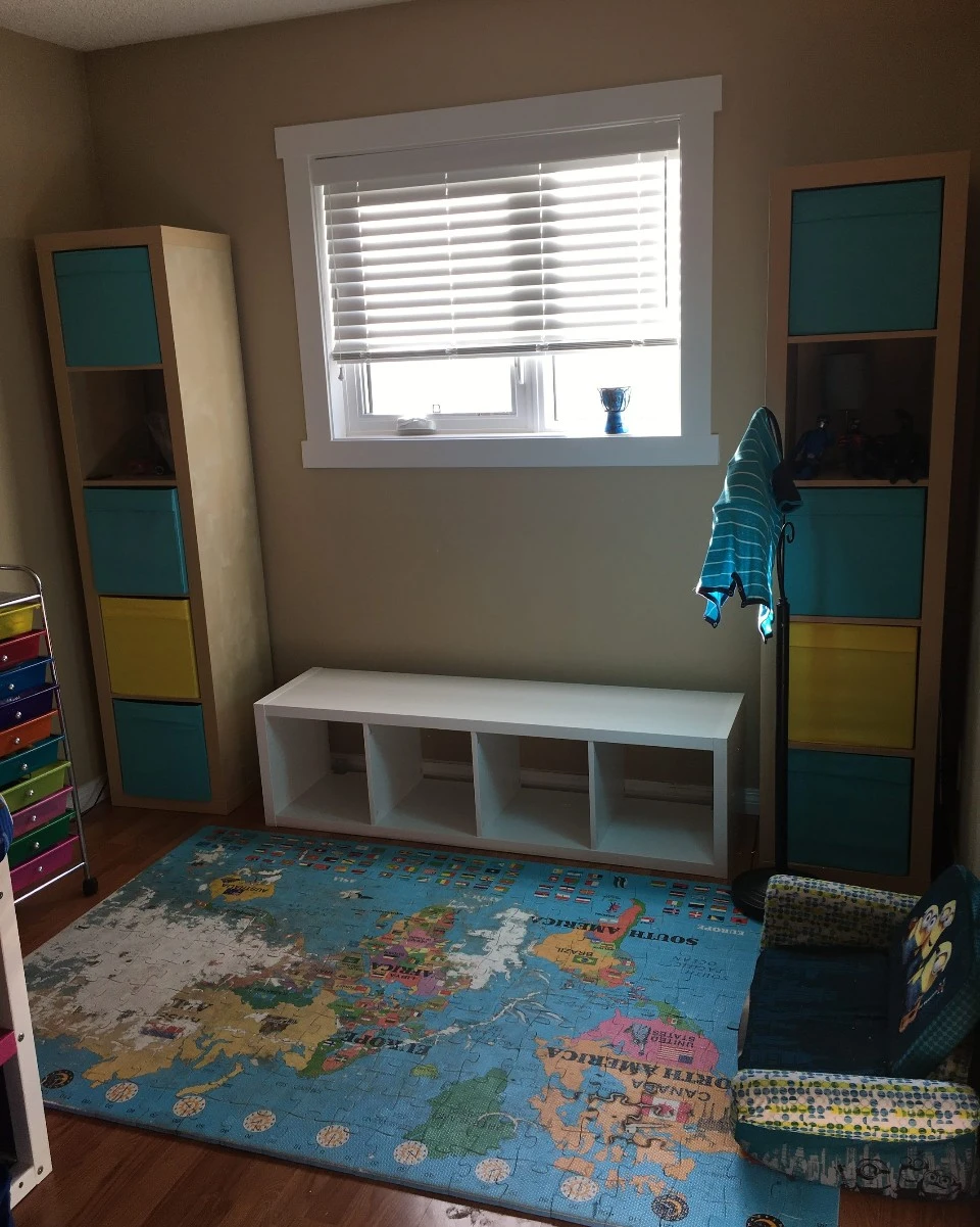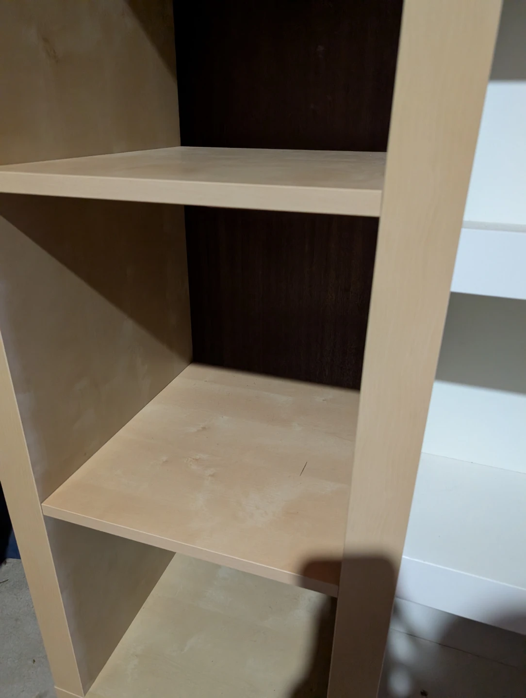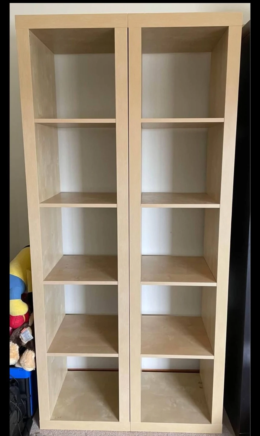 2 Ikea shelves for sale. moving & downsizing next year, so need to clear the non essentials. The squares fit the regular Kallax boxes.