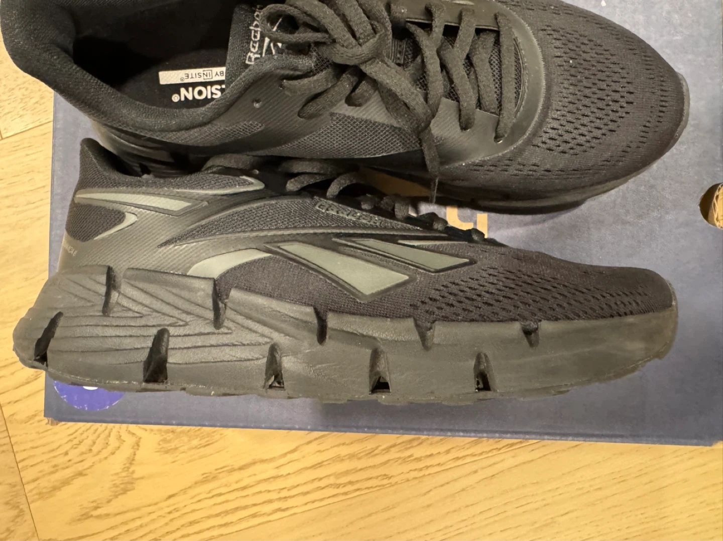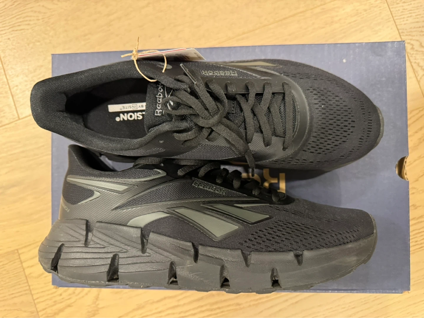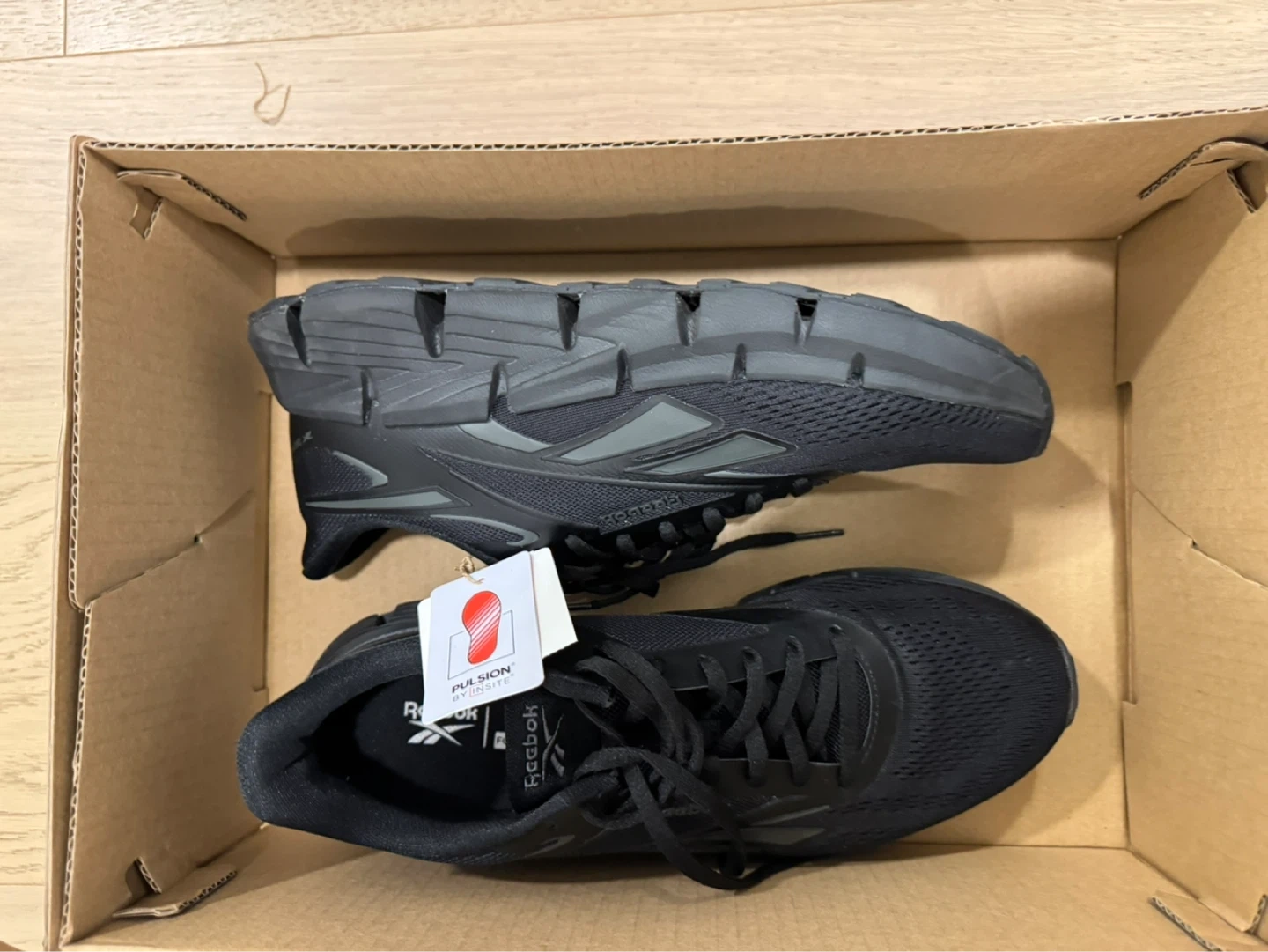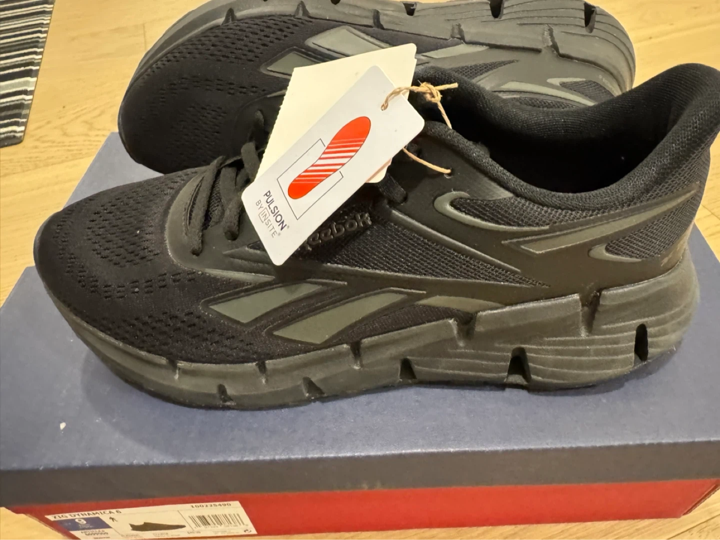 These black Reebok Zig Dynamica 6 running shoes are designed for comfort and performance. They feature a breathable mesh upper and responsive cushioning. Includes original box.