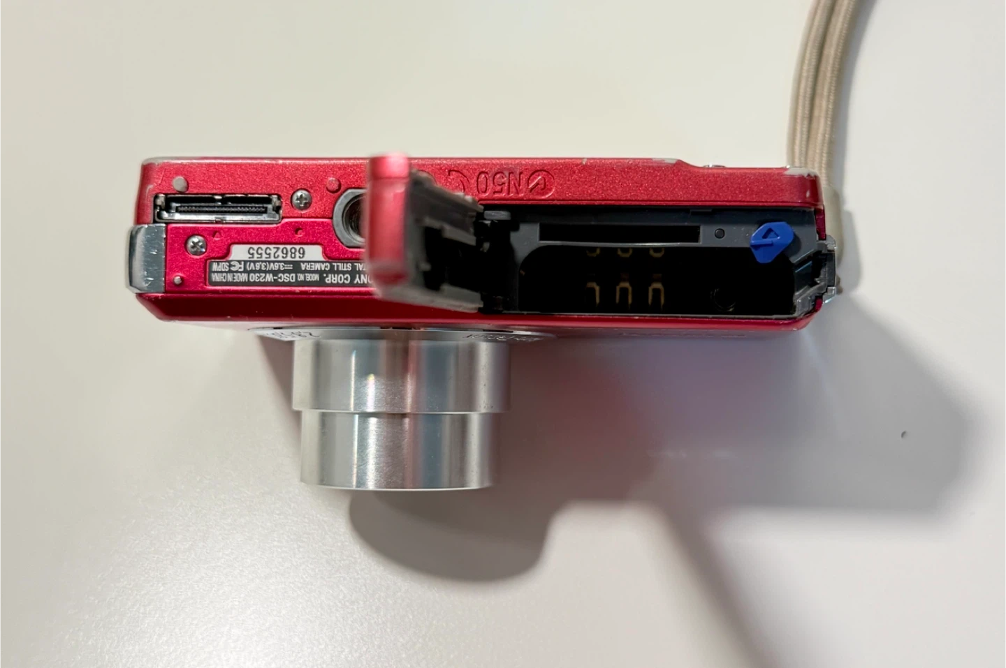 Selling a used Sony Cyber-shot DSC-W310 digital camera in red. It features 12.1 mega pixels. Included is a Kastar battery charger and battery.