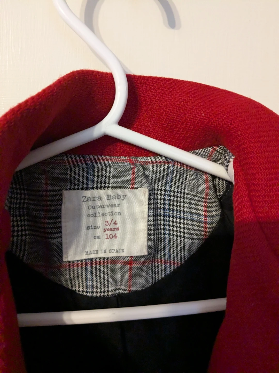 Zara Baby outerwear jacket in a vibrant red. It's a size 3/4 years, equivalent to 104 cm.