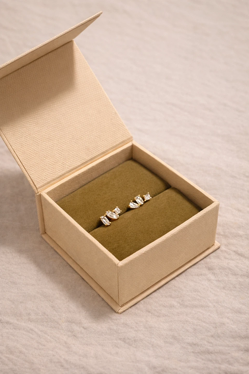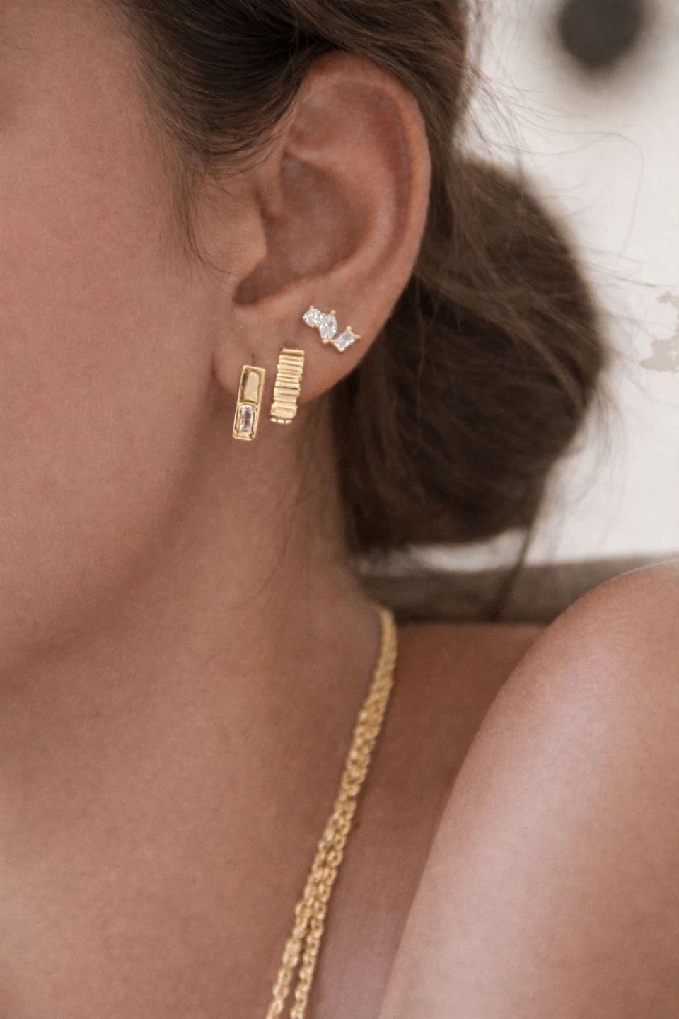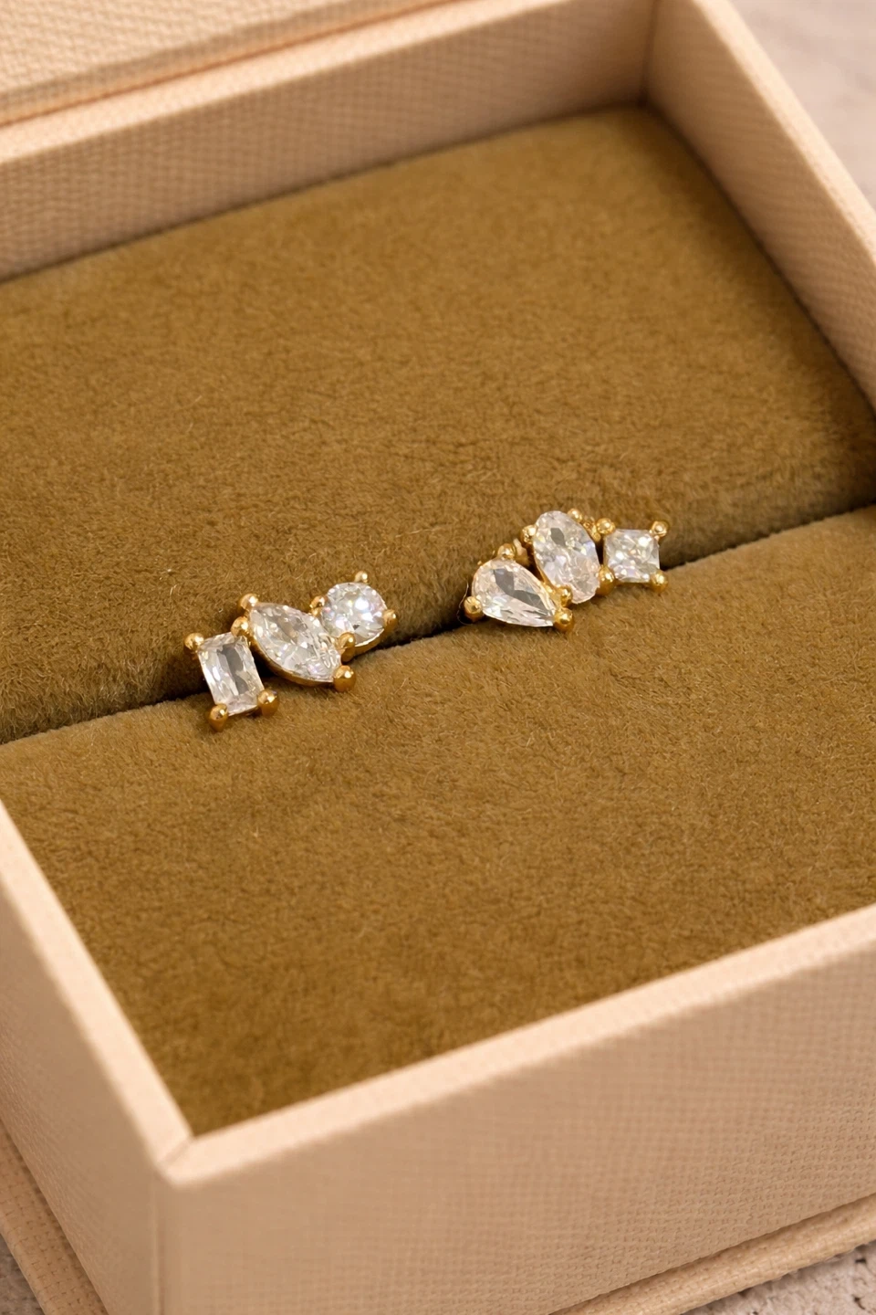 A modern classic with understated elegance. The Gigi Asymmetrical Studs feature a refined mismatched design with soft, luminous sparkle — minimal yet distinctive.