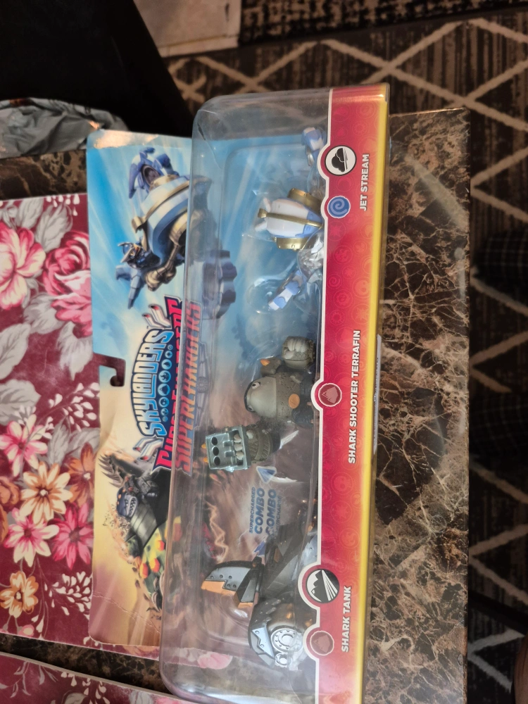 A Skylanders Superchargers combo pack, including two characters in a package. The box features character images, and product details. A great item to sit and collect, or play with on a relaxing afternoon.