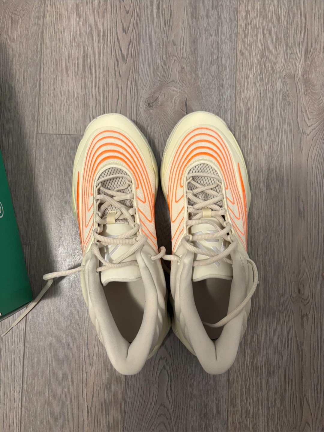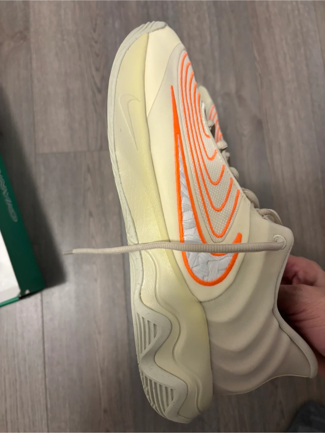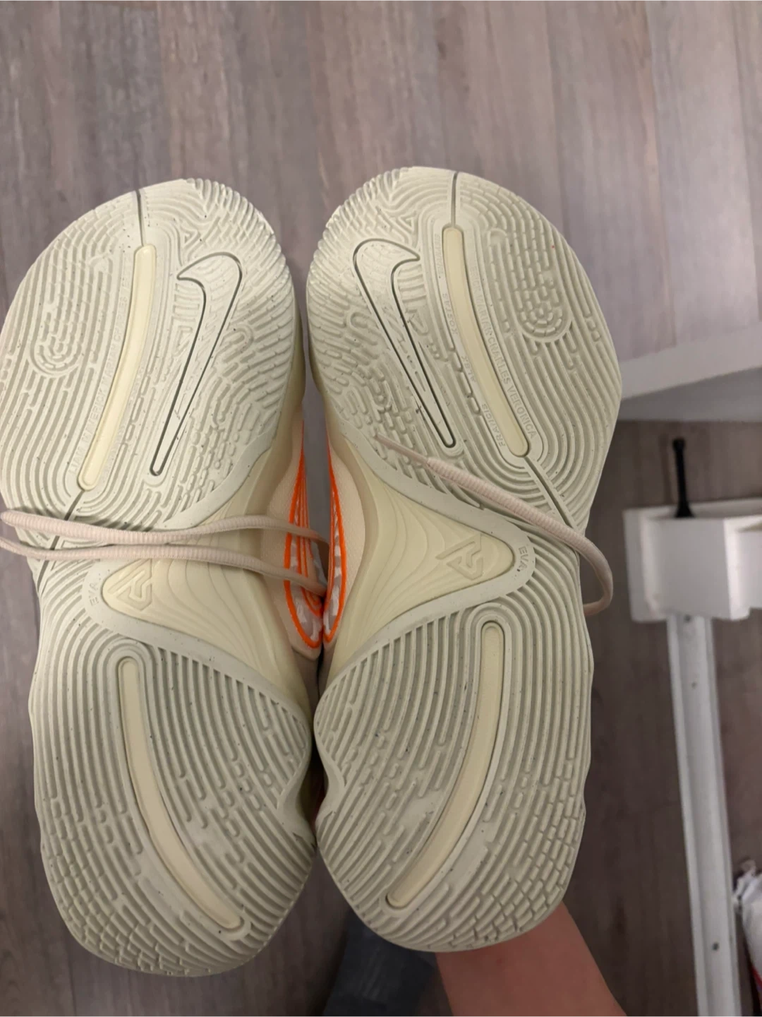 New These Nike Giannis Immortality 2 basketball shoes are a cream and orange colourway. They feature a secure lace-up closure. The rubber outsole provides excellent traction.