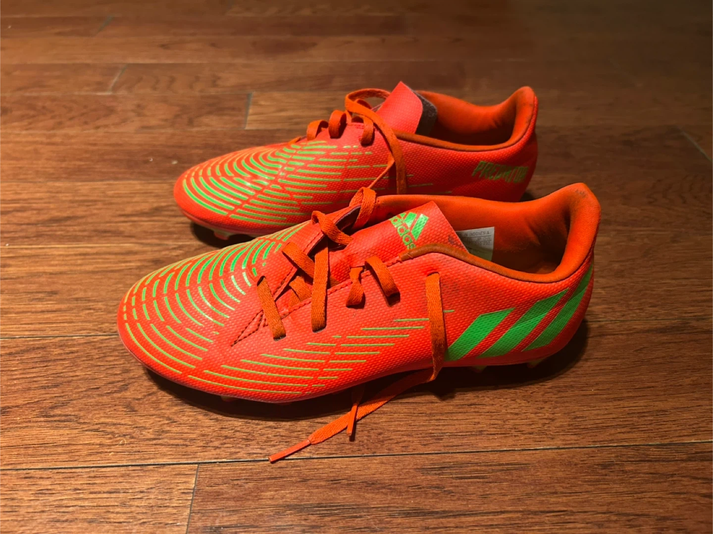 These are Adidas Predator cleats. The size is US men’s 5/women’s 6.5. There are signs of wear(dirt), but still completely functional with no structural damage. Perfect for playing soccer or other sports!