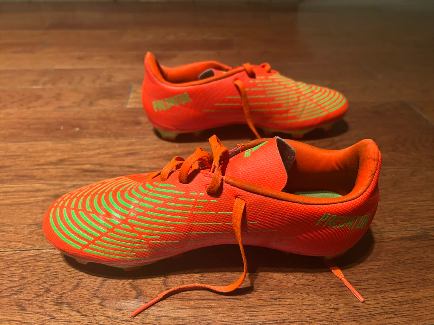 These are Adidas Predator cleats. The size is US men’s 5/women’s 6.5. There are signs of wear(dirt), but still completely functional with no structural damage. Perfect for playing soccer or other sports!