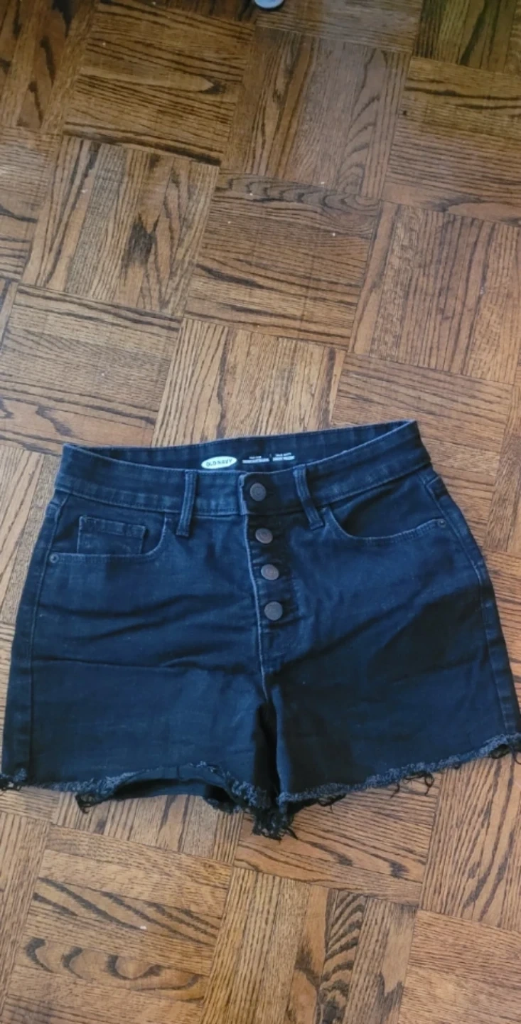 Old Navy high rise black denim shorts. Size 4. Made with 72% cotton, 26% polyester, and 2% elastane. These shorts are perfect for a casual day out!