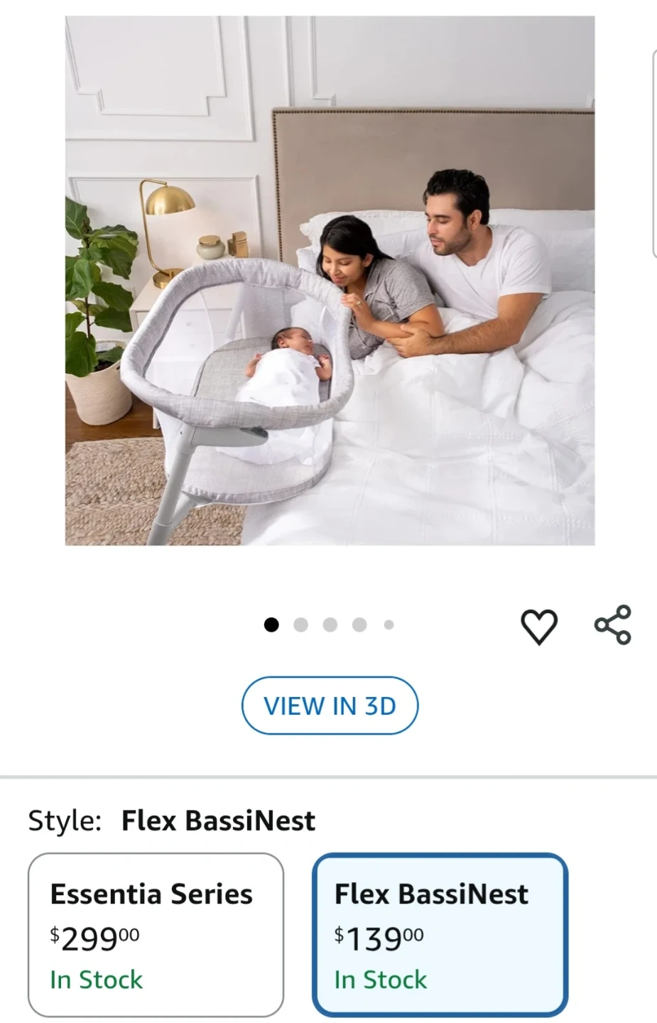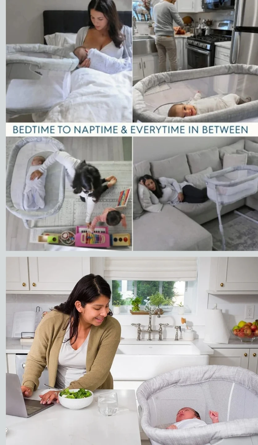 This HALO Baby Bassinet Flex is a portable, adjustable co-sleeping crib. It features mesh walls for breathability and glides to come close to your bed. Includes mattress and carrying bag. Height adjustable to fit most bed heights.