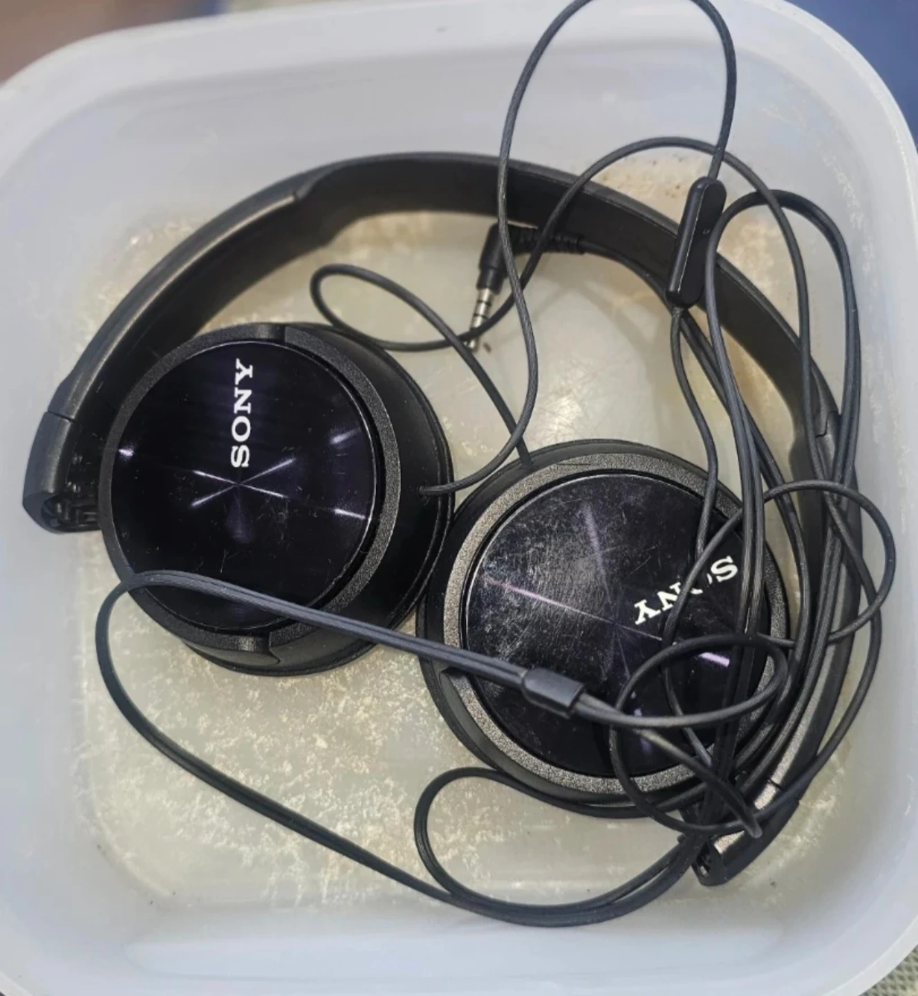 Giving away a pair of black Sony headphones. They show some signs of use, as you can see in the pictures, but they still work perfectly fine! Great for listening to music or podcasts.