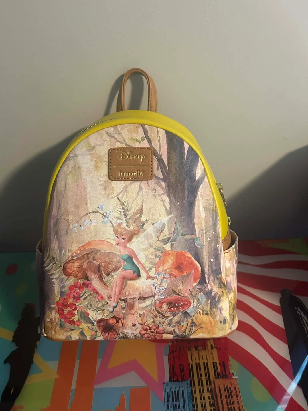 This adorable mini backpack features a whimsical Tinkerbell design in a mushroom forest setting! It's from Disney Loungefly and is in perfect condition. Perfect for adding a touch of Disney magic to your day!