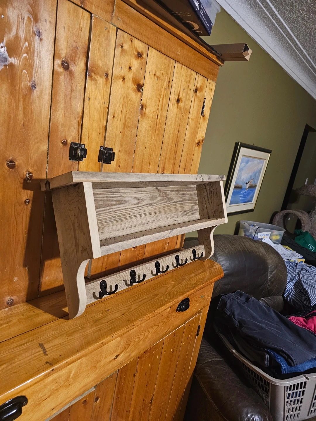 Wooden Shelf with Hooks