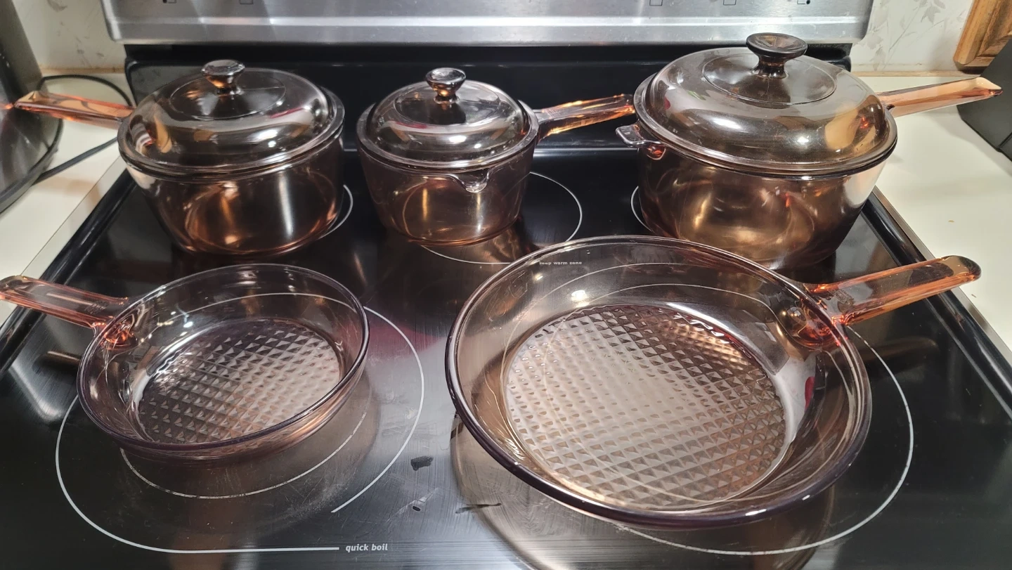 Buy & SellCorningWare Visions Cookware SetCorningWare Visions Cookware Set$157Amber glass cookware set. Includes three pots with lids and two frying pans. It's oven and stovetop safe!ConditionLike newWHERE TO MEETCheck LocationView MapSELLERDevanLockport100 reviews0 chats·0 favorites·6 viewsSEND CHAT TO SELLERHi Devan! I’m interested in your listing.Hi Devan! I’m interested in your listing.Get the Karrot app to chatSign In to chat