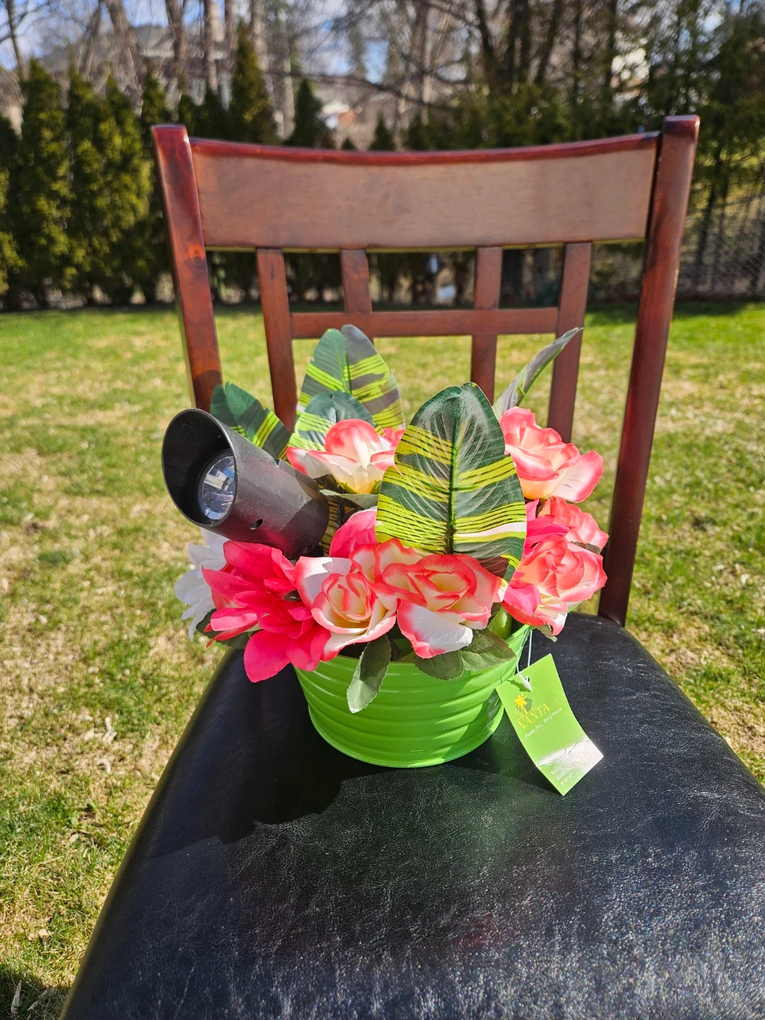 These are beautiful artificial flower arrangements. 1 Comes comes in a cute pink mug with 'Nana' written on it and includes a small chalkboard sign. It's perfect for adding a touch of colour to any room! 2 are in red Boots. The green has a solar light.