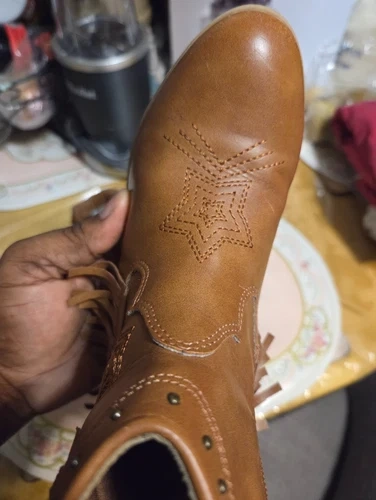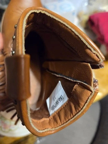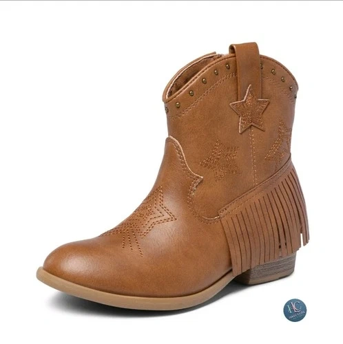 Adorable western-style ankle boots by Dream Pairs, perfect for boys or girls. These boots feature classic star embroidery, a stylish fringe block heel, and an easy pull-on design. Great for fall outfits, western wear, school, or everyday use. Condition: Pre-owned and in good condition. Light cosmetic scuffs on the front toe area from normal wear. No rips, no cracks, no odors. Structurally sound and ready to wear. Details: Brand: Dream Pairs Style: Western / Cowboy / Cowgirl Ankle Boots Color: Brown Material: Synthetic leather upper Closure: Pull-on with back loop Heel: Block heel with fringe detail Toe: Round toe Gender: Kids / Boys / Girls. Comfortable, stylish, and versatile — these boots pair perfectly with jeans, dresses, and fall outfits. Retail for over $60 CAD new. Feel free to message if you have any questions!
