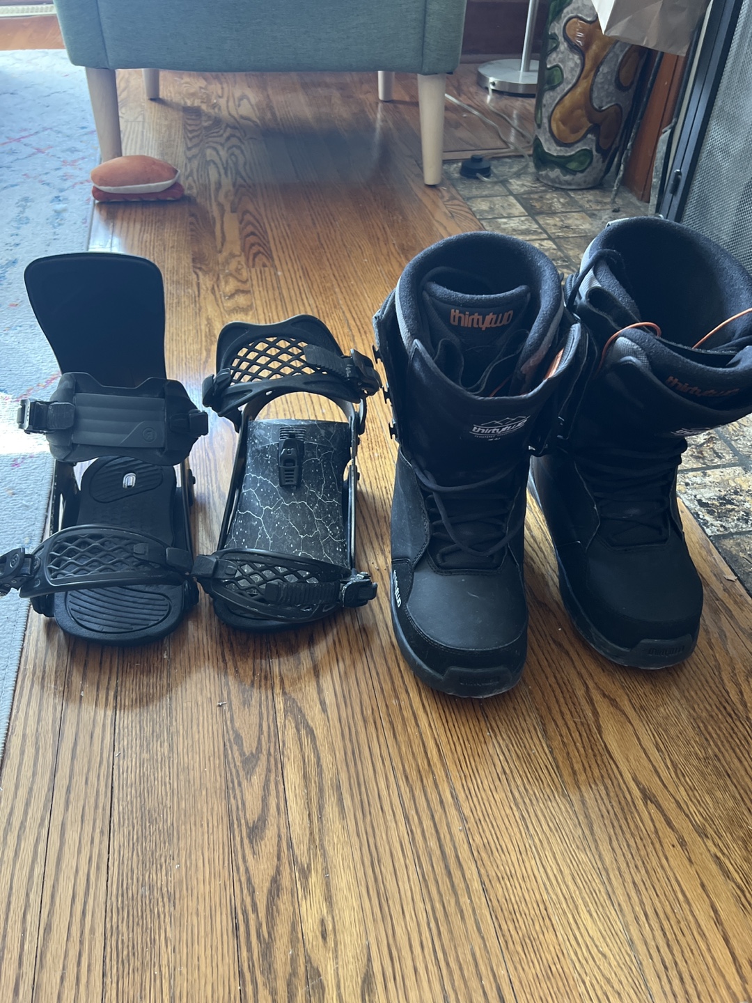Upper strap on right binding replaced with a Ride strap and boots are good. Both still in very good condition. Ideal for someone looking to start. Size of the boot is 10.5 and the bindings are large. Selling each for 50 bucks or together as a package for 75 bucks.
