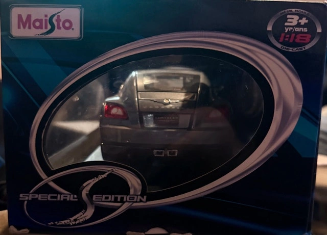 Add a touch of sporty elegance to your collection with this Maisto 1:18 scale die-cast model of the Chrysler Crossfire, a special edition piece that captures the essence of the iconic coupe. This collectible is new and in excellent condition, preserved in its original packaging. Brand: Maisto, Scale: 1:18, Model: Chrysler Crossfire, Special Edition. Given its pristine condition and the collectibility of Maisto's special edition models, I'm asking $60.00. If the ad is up, the Crossfire is available. Feel free to message if you have any questions!