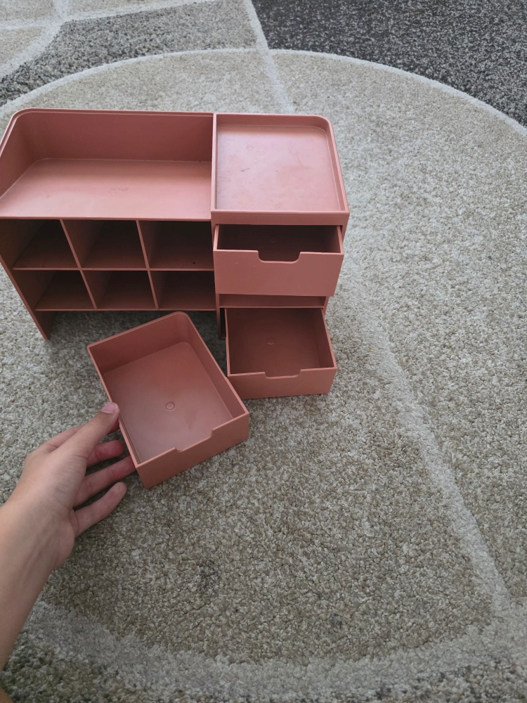 This organizer features 3 drawers, 8 compartments and a removable top tray. It is a great way to store and organize all of your makeup products.