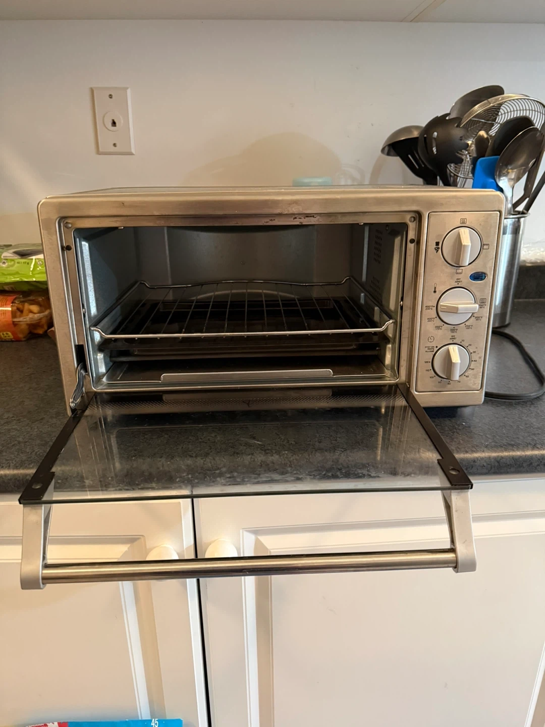 This PC President’s Choice toaster oven features temperature settings up to 450°F and a timer. Includes a baking tray and rack. Useful for quick meals and baking small batches. Only used a few times, in very good clean condition.