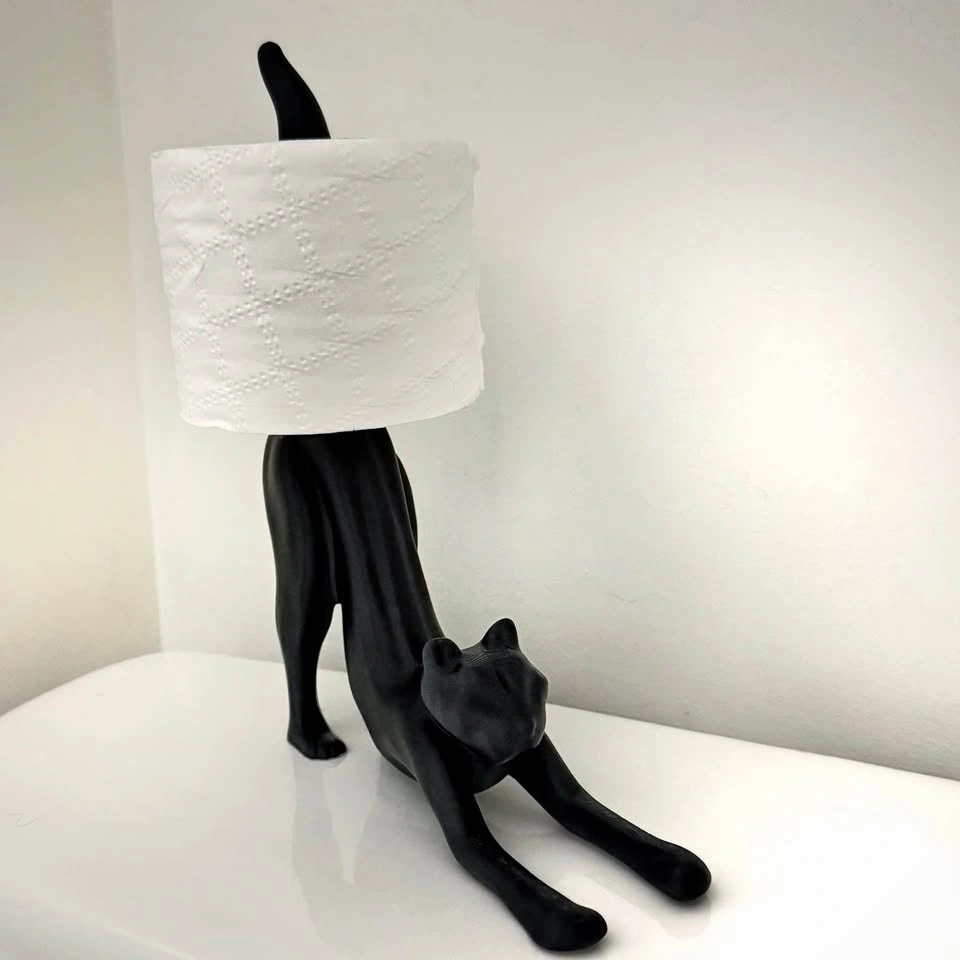 High quality cat toilet paper holder! About 11 inches tall. Great for back of toilet or on a shelf. Available in Black, vibrant green, pink, red, yellow, purple, brown, orange, white, blue, grey, and olive green. Built By Bubs 3D printing. Practical and fun prints. Custom print requests welcome!