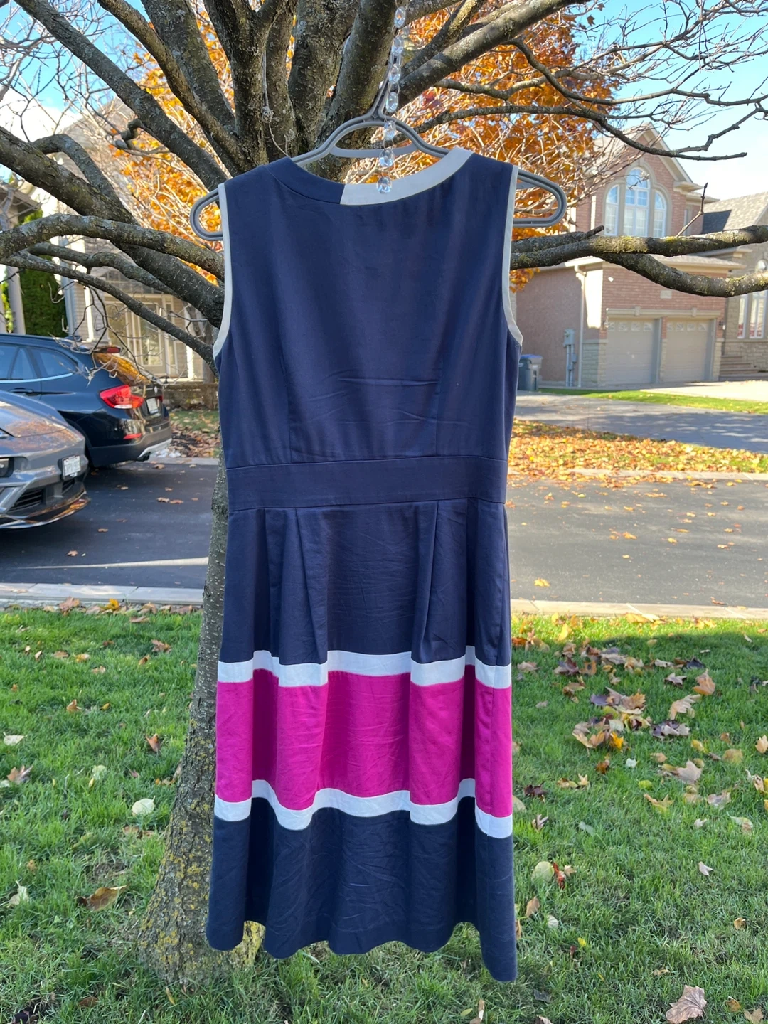 Selling a lovely Anne Klein dress. It's a size 2 and features a stylish navy, white, and pink colour block design. Perfect for any occasion!
