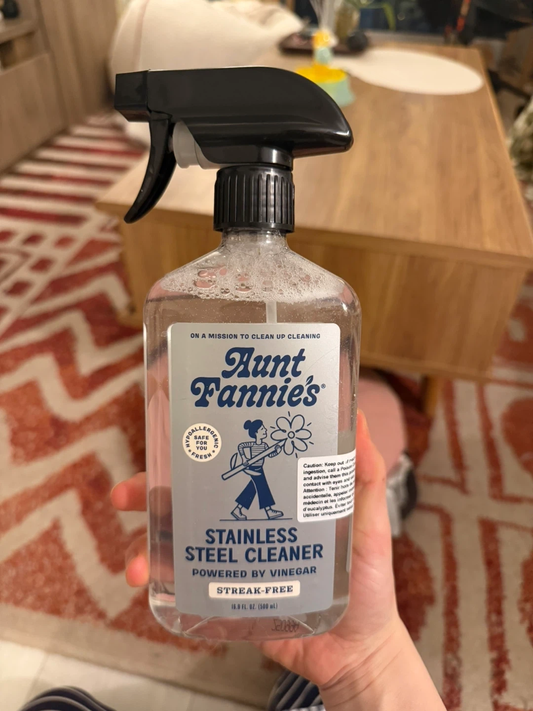 Aunt Fannie's Stainless Steel Cleaner powered by vinegar. It's streak-free and safe for you. This cleaner is dermatologically tested and made with plant-based ingredients.
