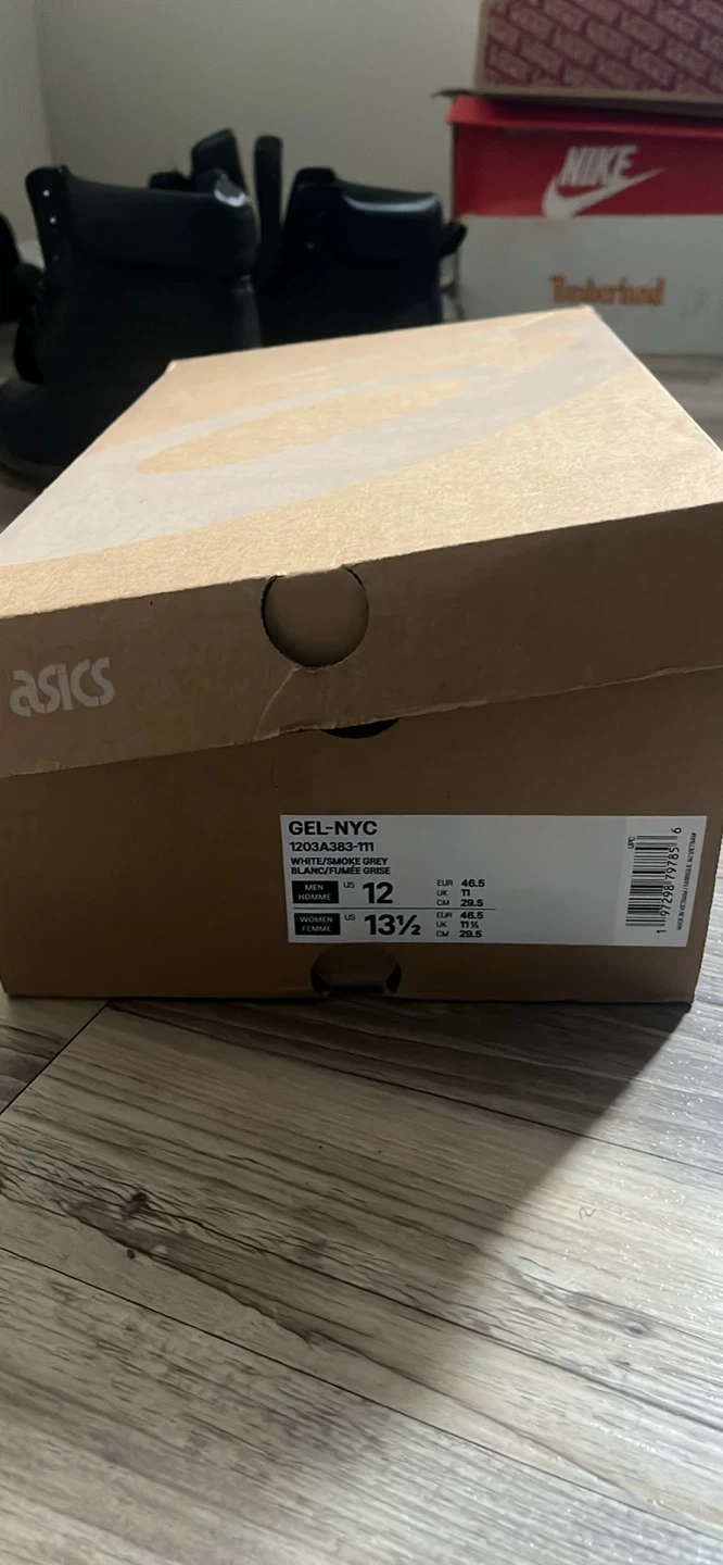 ASICS GEL-NYC sneakers in a White/Smoke Grey colourway. Men's US size 12. Includes original box.