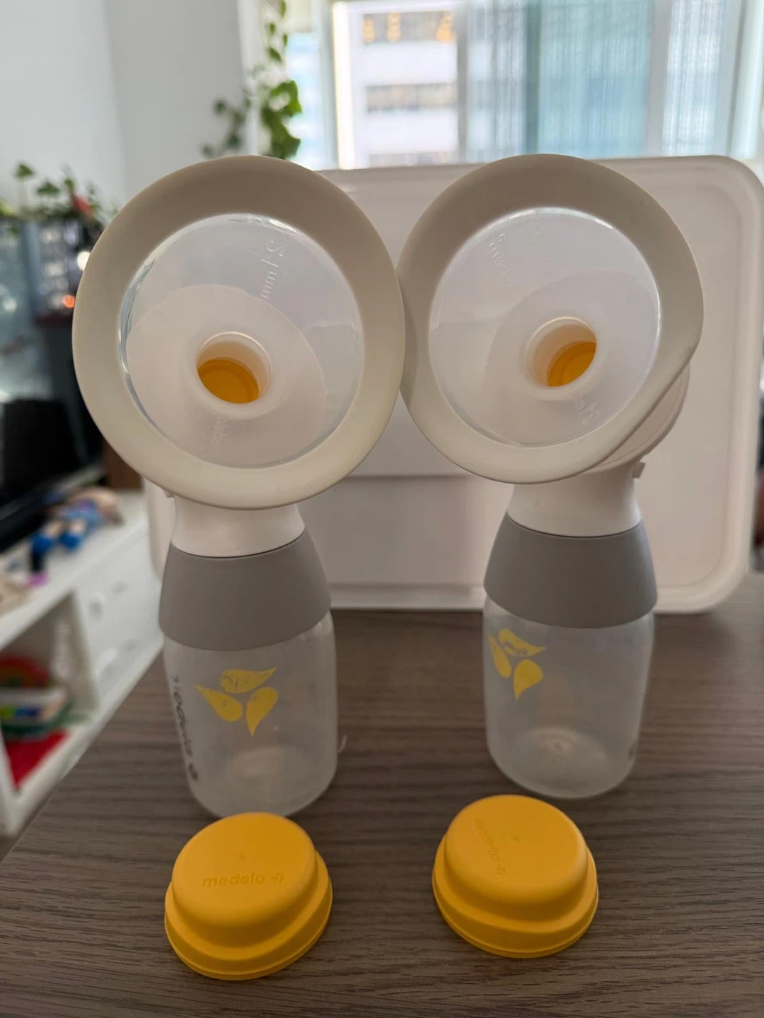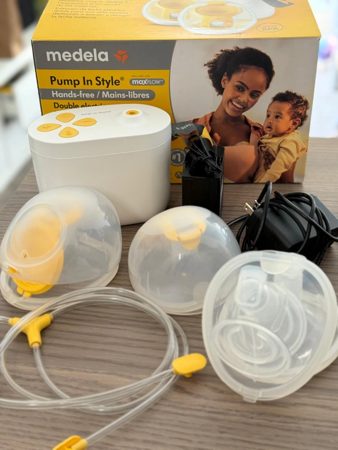 This is a Medela Pump In Style Advanced double electric breast pump. It includes (1) Pump In Style Pro, (2) Hands-free Collection Cups with 24 mm breast shield and O-ring; (2) 21 mm breast shield and O-ring; (1) Complete tubing; (2) Connectors with Membranes, (2) Bottles with Lids, (2) PersonalFit Plus Breast Shields 21 & 24 mm. Used for only for couple of days. Sanitized and kept.