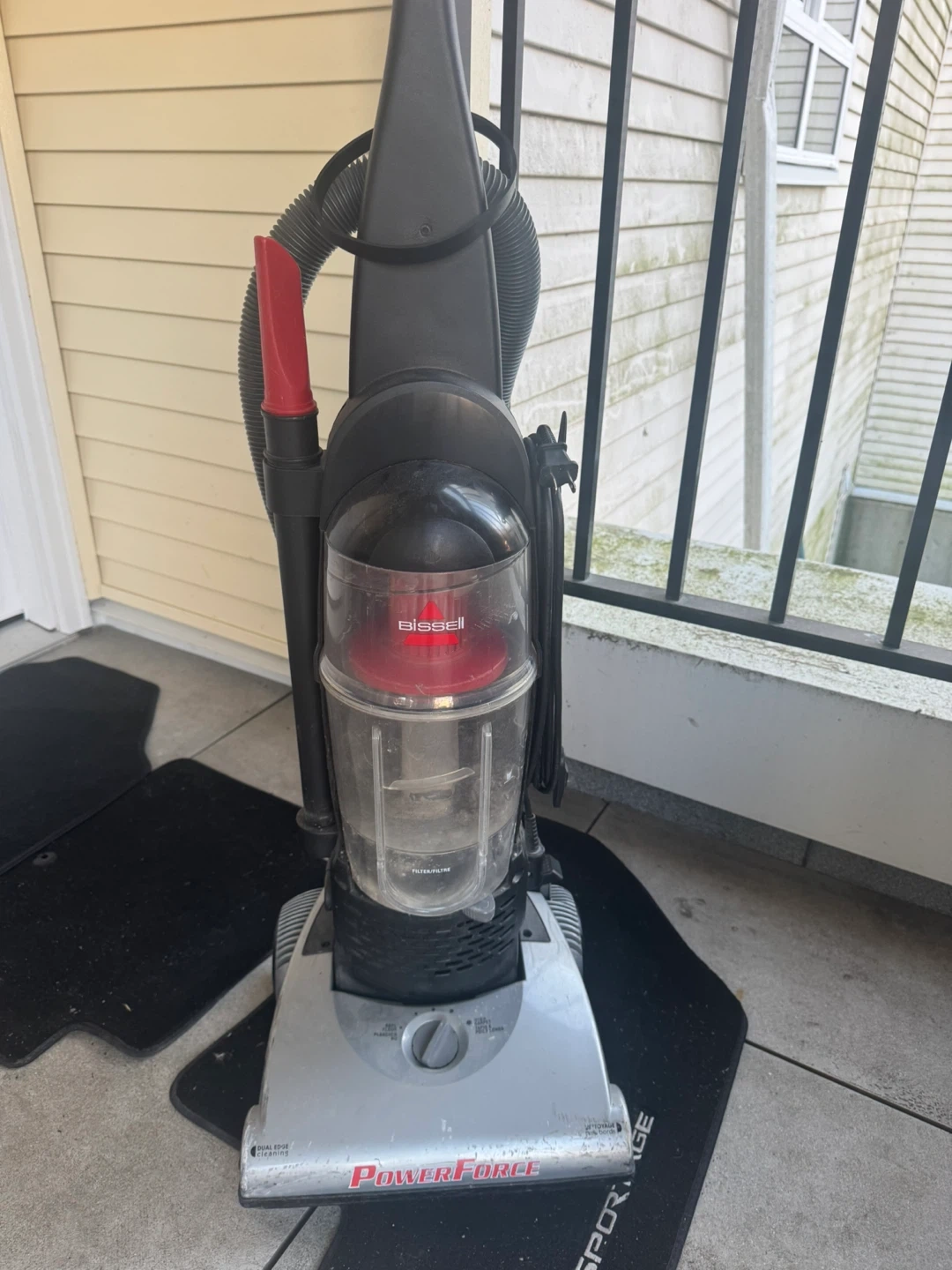 This Bissell PowerForce vacuum cleaner features a bagless design for easy dirt disposal. It's lightweight and comes with a hose and crevice tool for versatile cleaning. Perfect for quick cleanups around the house!