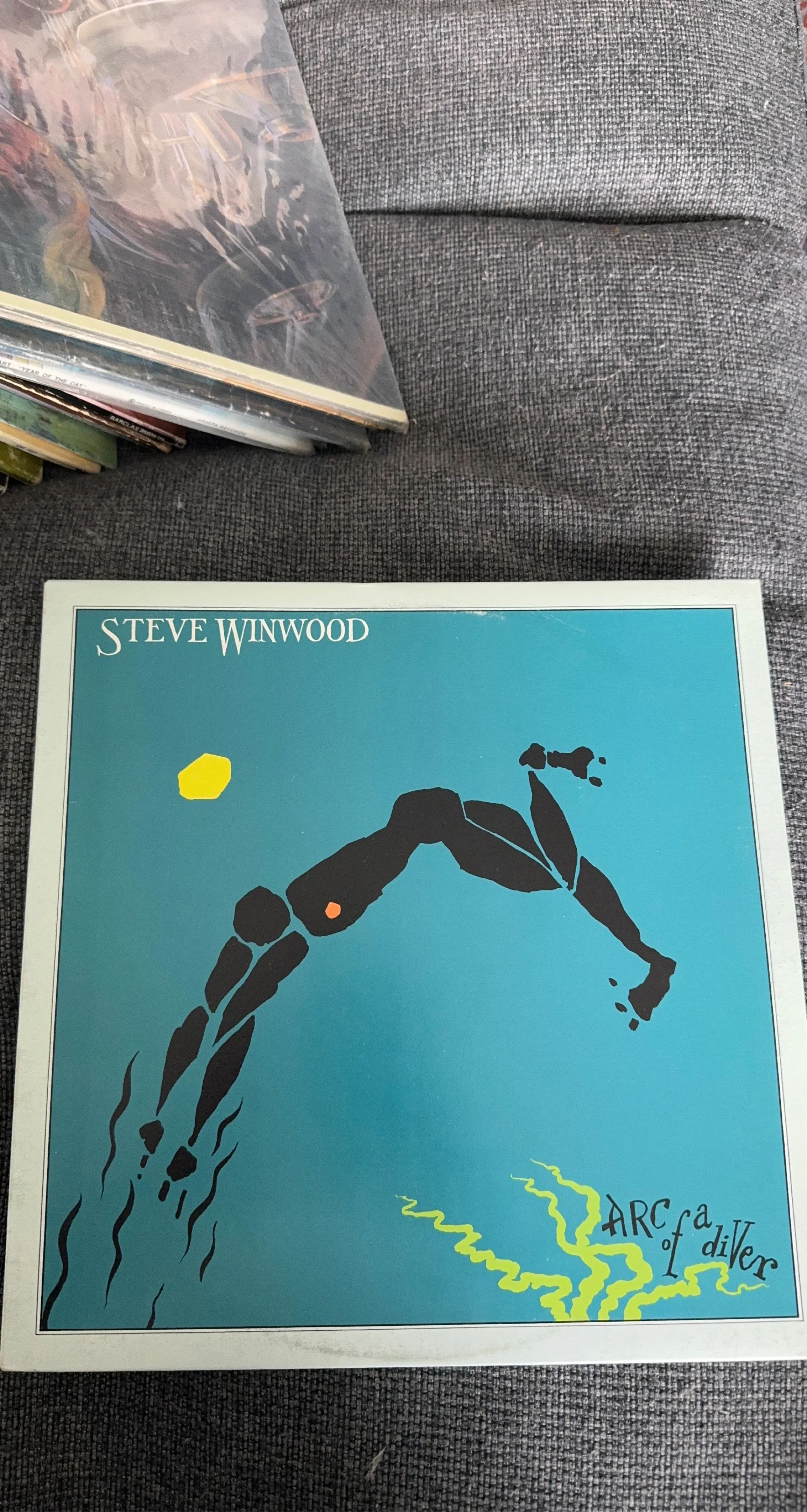 Steve Winwood's 1980 album, Arc of a Diver. Features tracks like 'Spanish Dancer' and 'Slowdown Sundown'. This is a vinyl LP.
