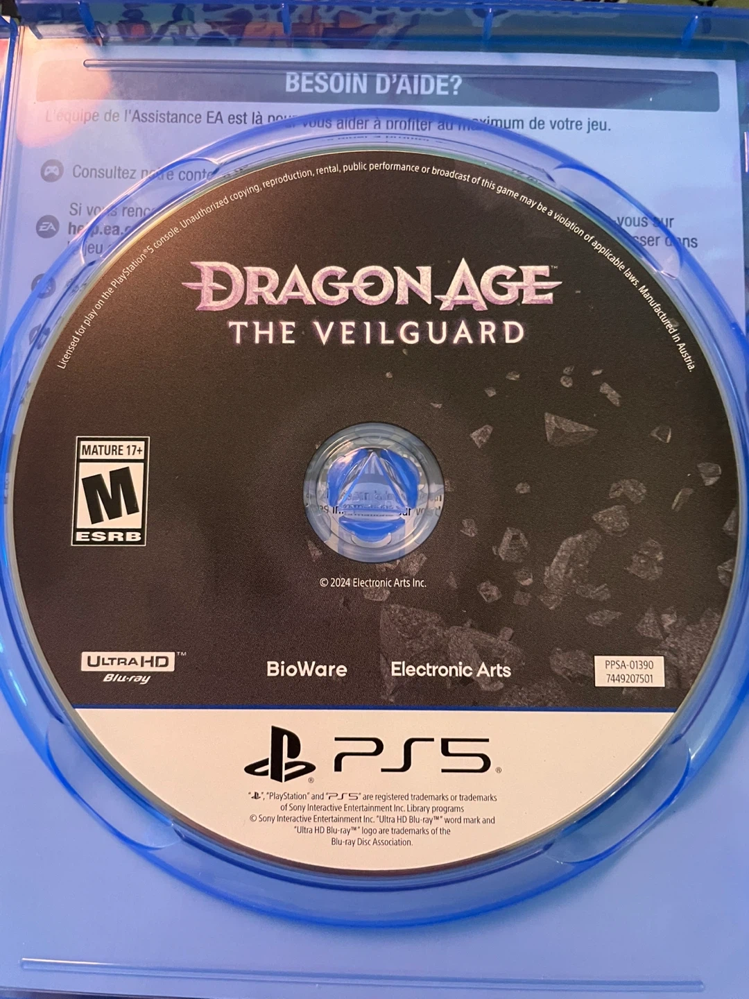 This is the PlayStation 5 version of Dragon Age: The Veilguard. It's an action role-playing game. The disc includes the game itself. Looks like new.