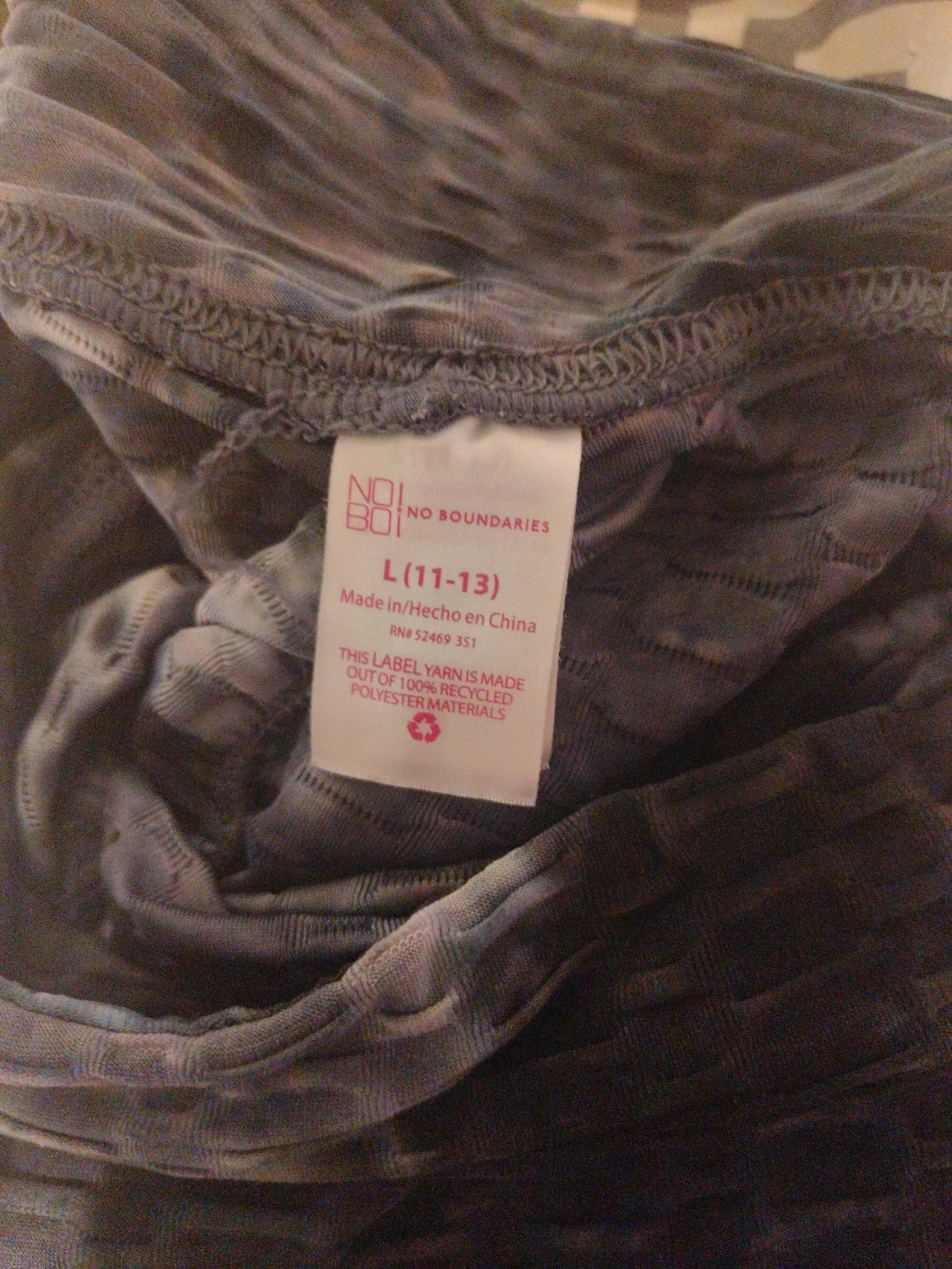 These No Boundaries leggings feature a textured tie-dye pattern. They're made with recycled polyester materials. Size L (11-13).