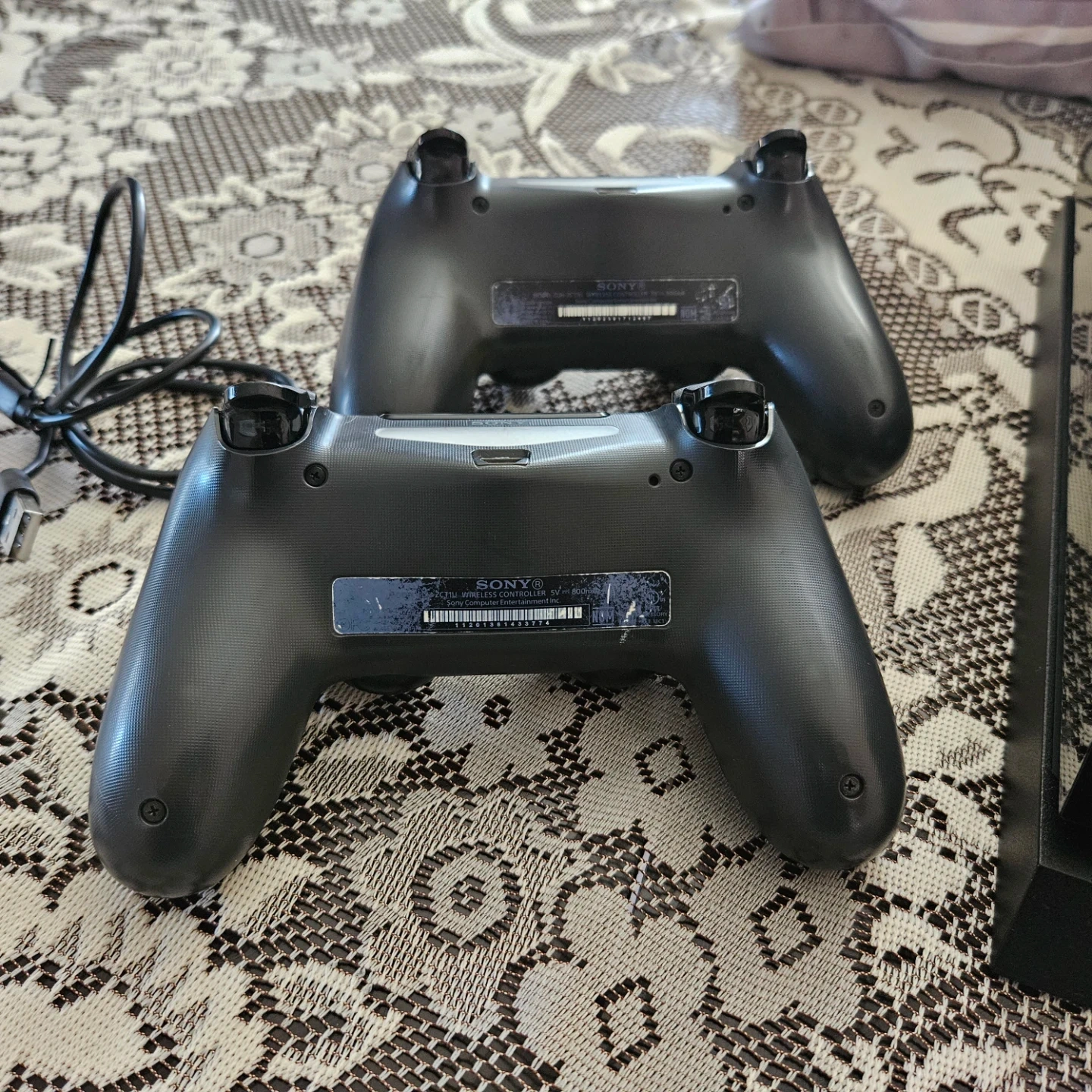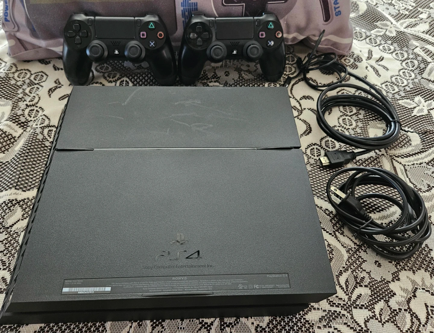 Sony PlayStation 4 (original model) video game console bundle (HDMI cable and power cord included) comes with 2 Sony DualShock 4 Wireless Controllers, which feature built-in motion sensors, a clickable touch pad, and an integrated light bar that changes color based on in-game action. The controllers can be charged by connecting them to the PlayStation 4 console using the included USB cable.