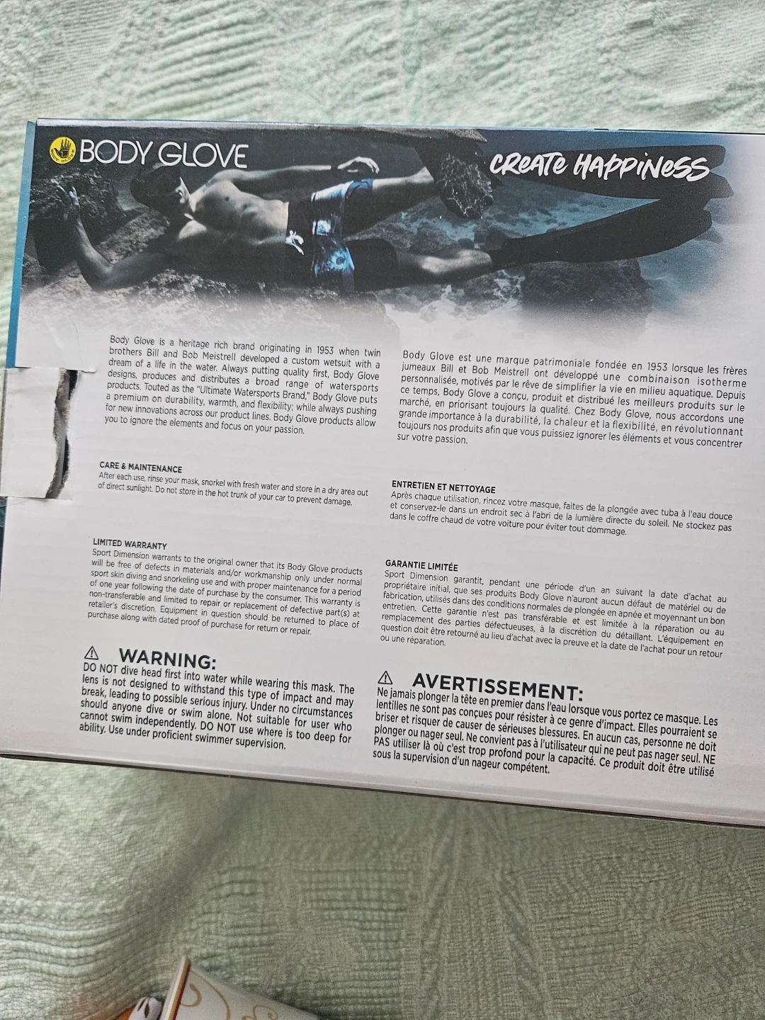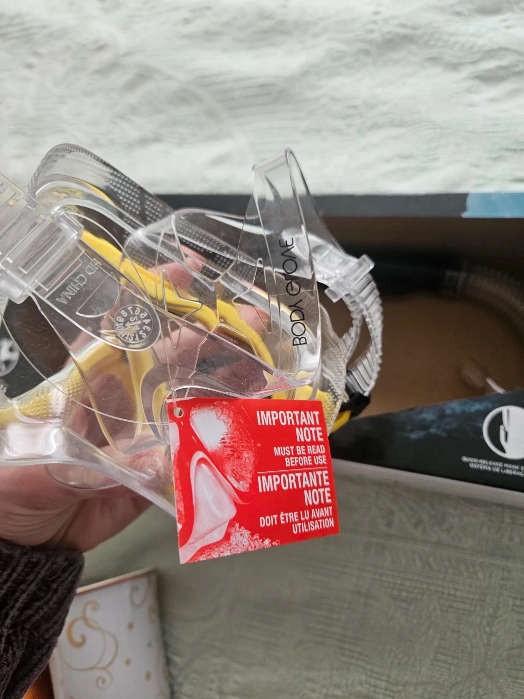 Adult snorkel mask and snorkel set from Body Glove. Tempered glass lens with a purge valve. Used once, glasses unused.