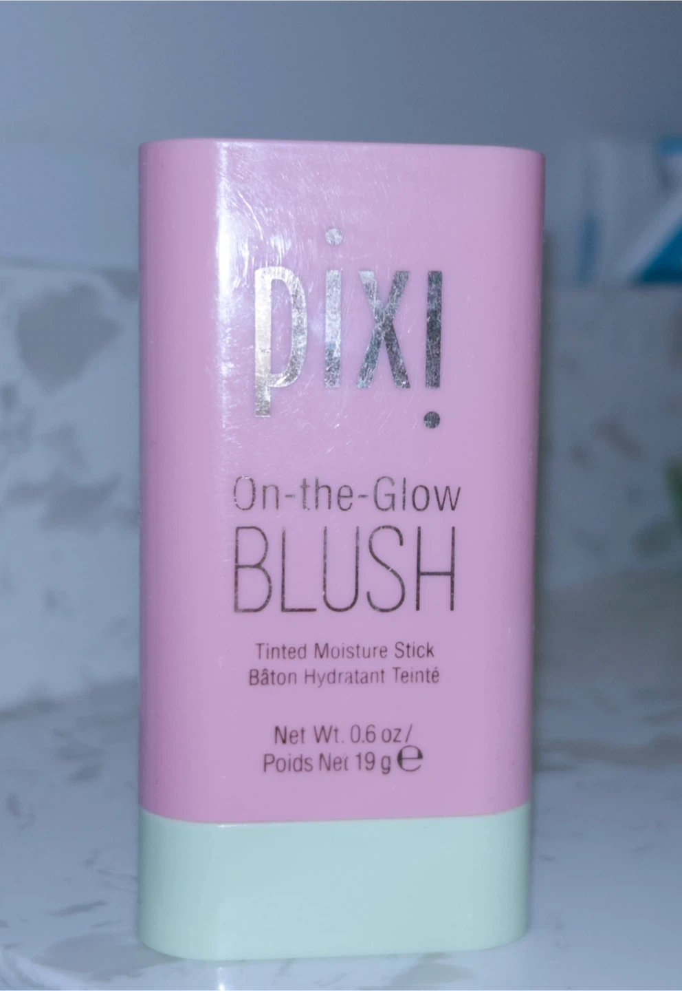 This is a Pixi On-the-Glow Blush Tinted Moisture Stick. It's a makeup stick for adding colour and moisture. Net weight is 0.6 oz / 19 g. It’s 80% new.
