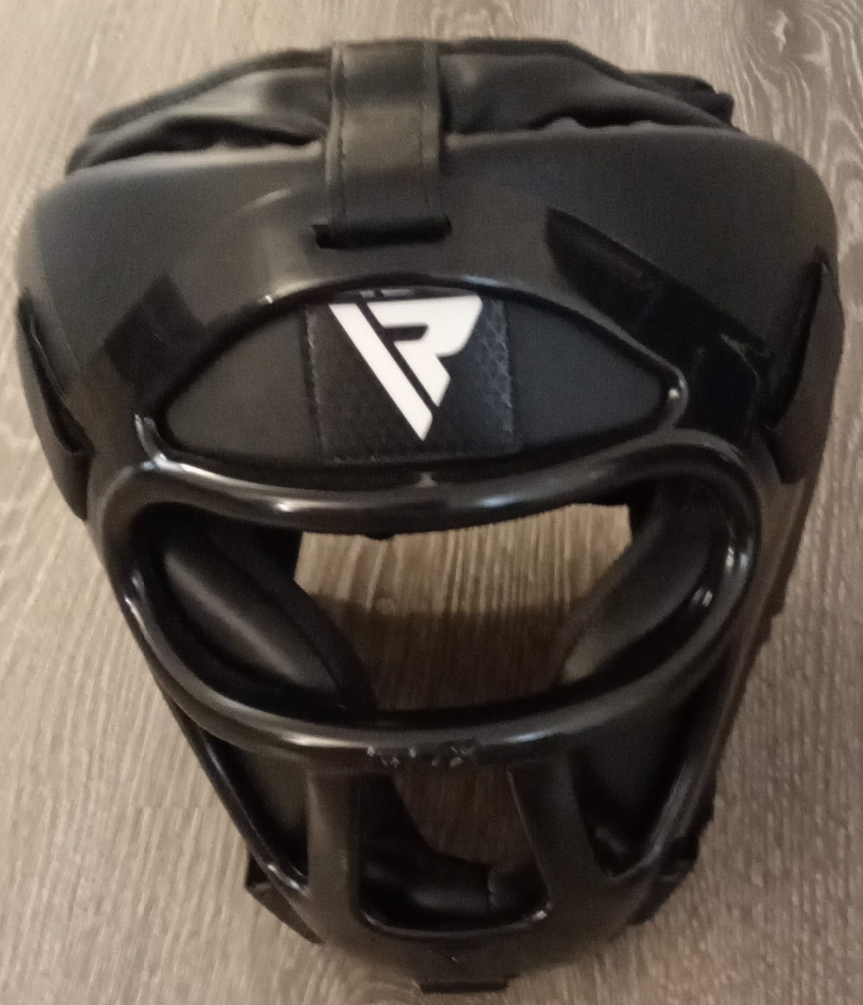 87I sell a black RDX boxing helmet, model HGR T1FB.Perfect for boxing and martial arts.It is in good condition and it's size is medium. There is still a name on the top of the helmet.