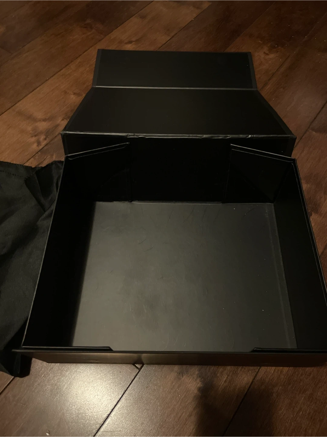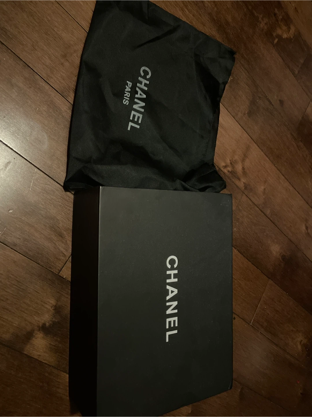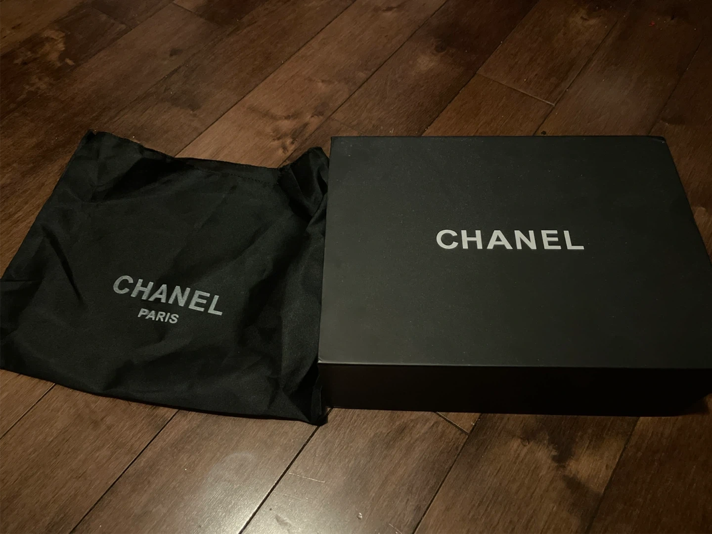 CHANEL PARIS black gift box. Includes a matching dust bag for protection. This box is perfect for storing small luxury items or keeping jewellery safe.