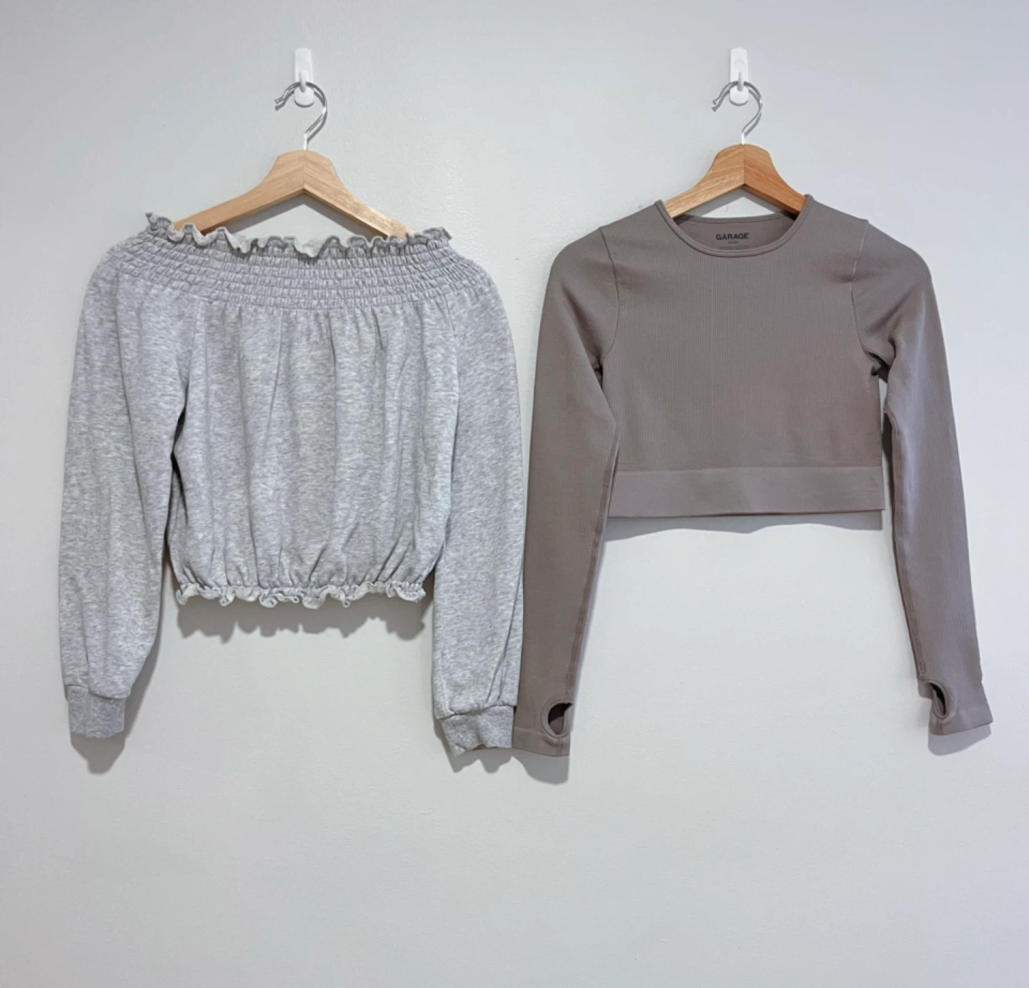Garage Off-the-Shoulder & Brown Ribbed Tops