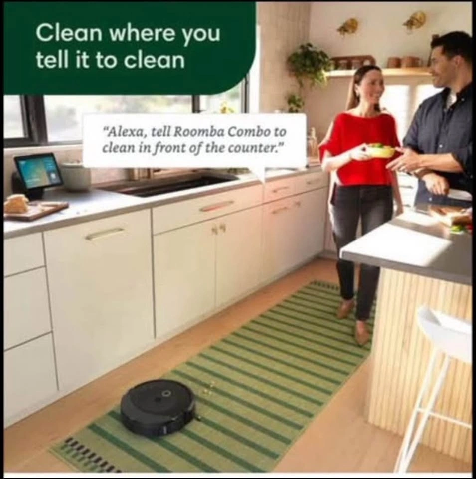 CLEANS WHERE YOU TELL IT TO CLEAN. Use the iRobot Home App or pair your robot with Alexa, Siri, or Google Assistant-enabled devices*. Simply tell it to clean the living room or by the dishwasher, oven or stove, toilet, even pet bowls, and you’ve got a cleaner home on command. *Works with Alexa, Siri, or Google Assistant-enabled devices. Alexa and all related logos are trademarks of Amazon.com. Spend less. Smile more. or its affiliates. Google is a trademark of Google LLC. Siri is a registered trademark of Apple Inc., registered in the U.S. and other countries and regions.