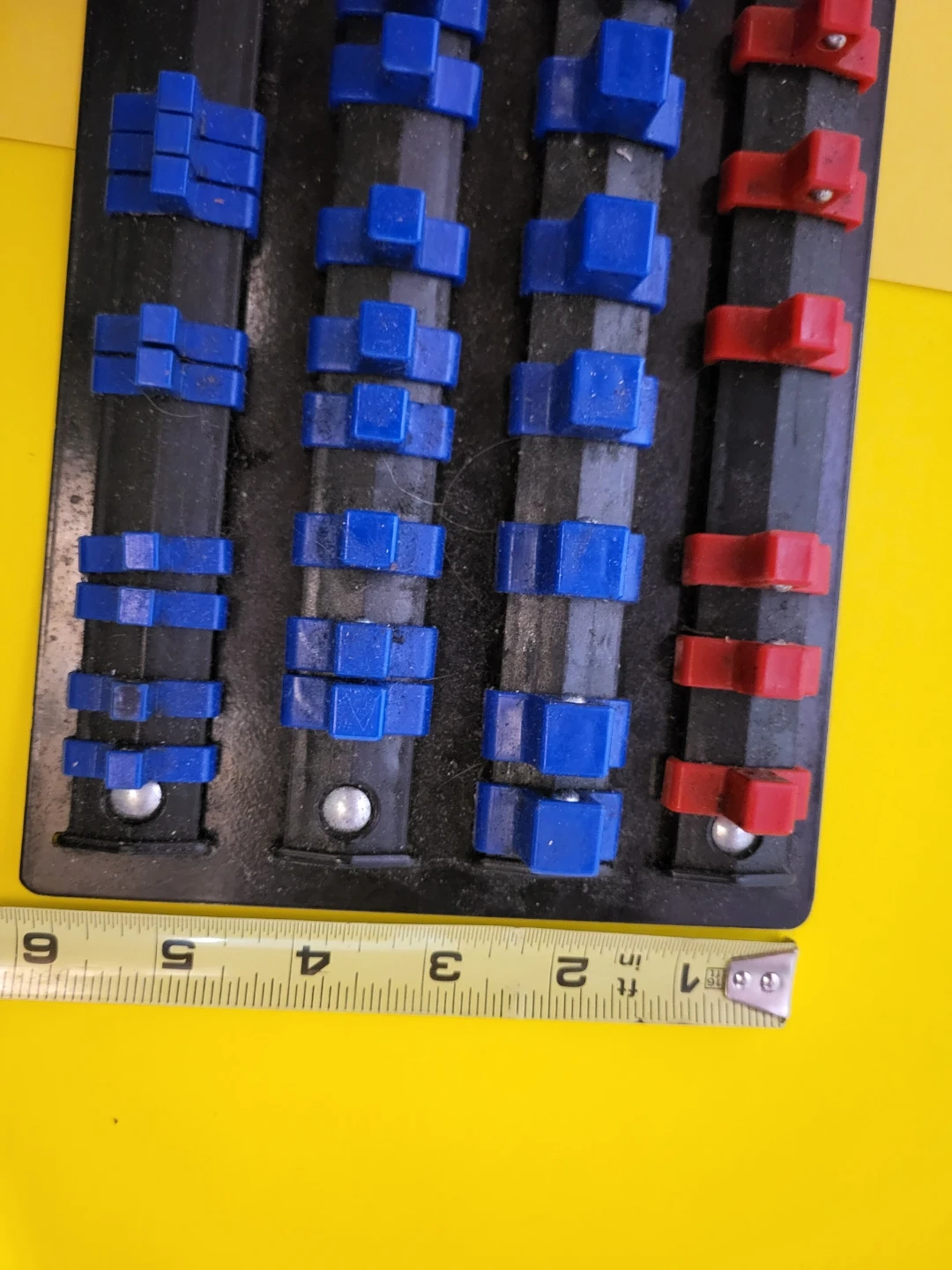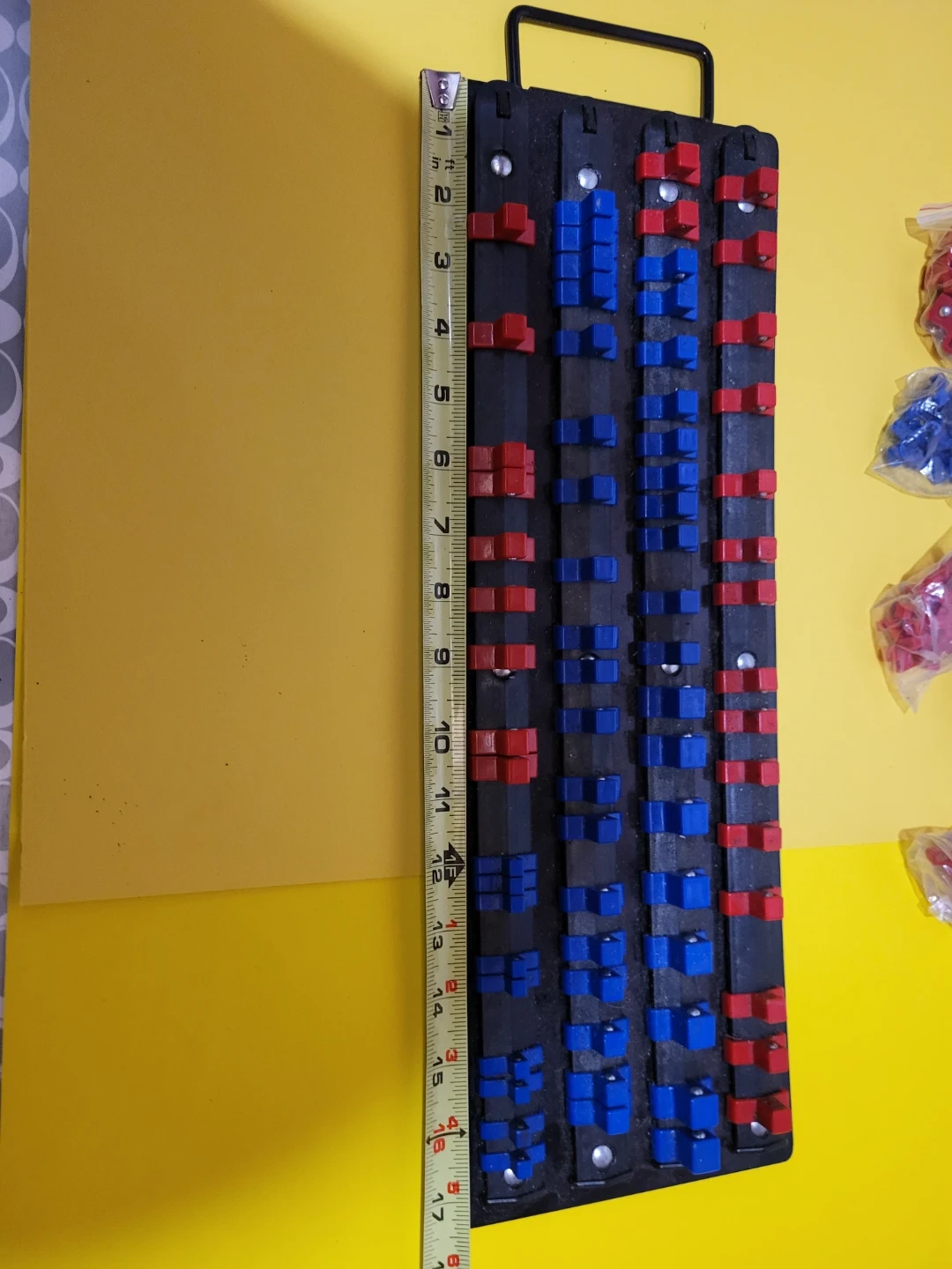 Socket Organizer Rack Tool with Red and Blue Clips