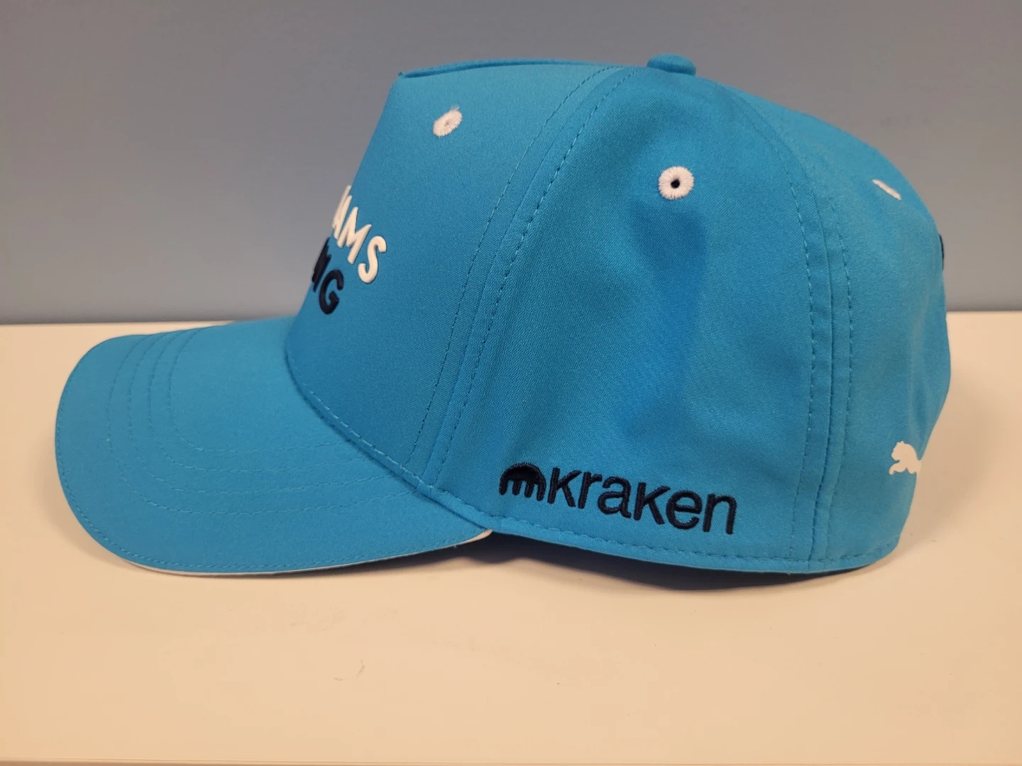 Here's a new Williams Racing hat in a vibrant blue colour with Puma, Komatsu & Kraken logo's as well.