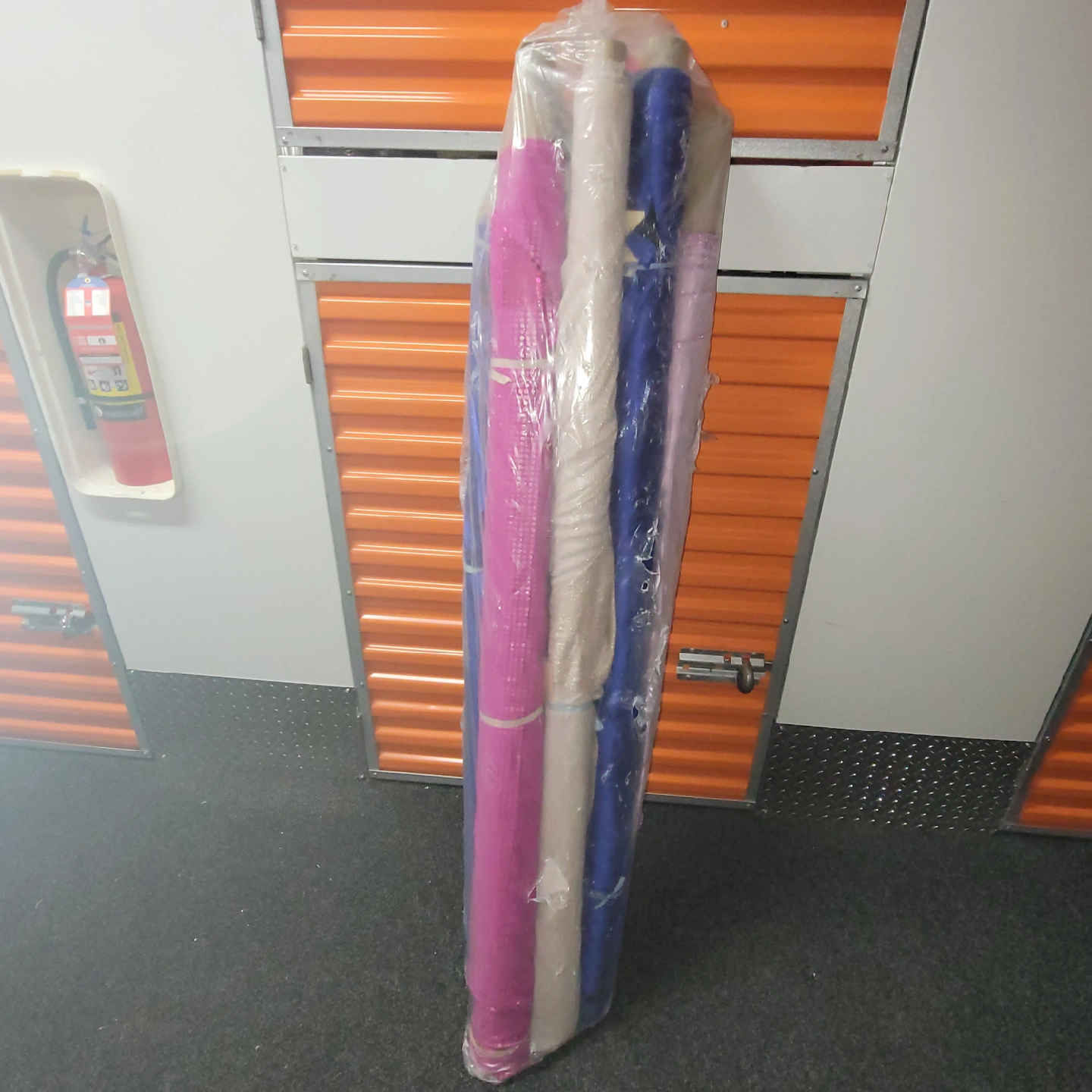 I'm selling a collection of fabric rolls! There are four rolls in total, featuring pink, white, black, and blue colors. These could be great for various craft projects or sewing needs. They are still in the original packaging.